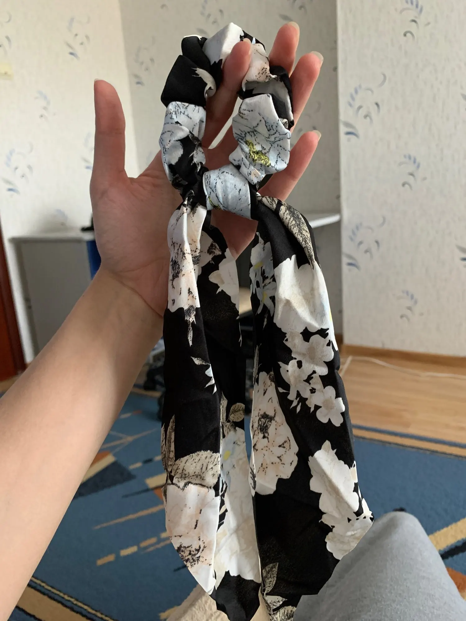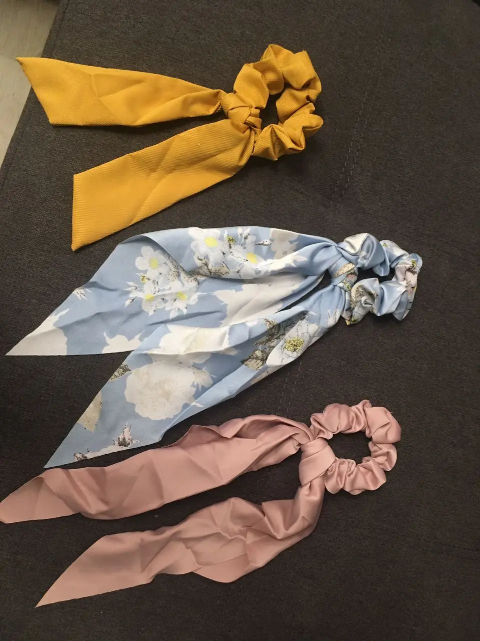 Резинки для волос шелковые атласные, однотонные, с цветочным принтом