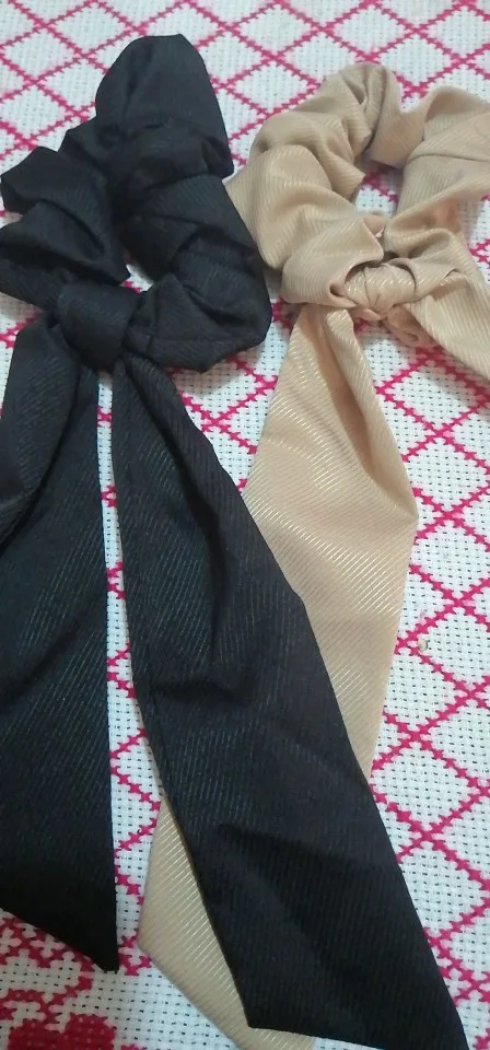Gumki są śliczne, chustka kolorowa z obu stron. Dobrze trzymają włosy, nie ciągną, jesteśmy bardzo zadowolona :)