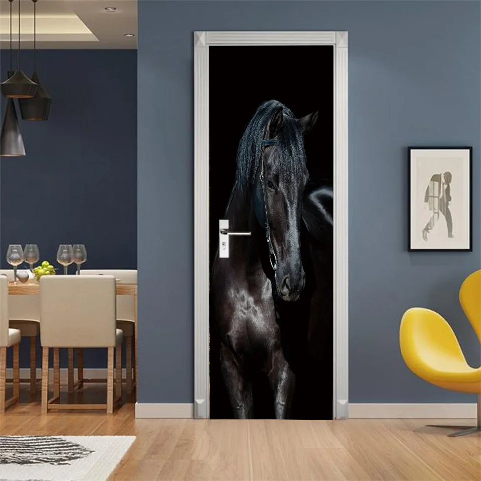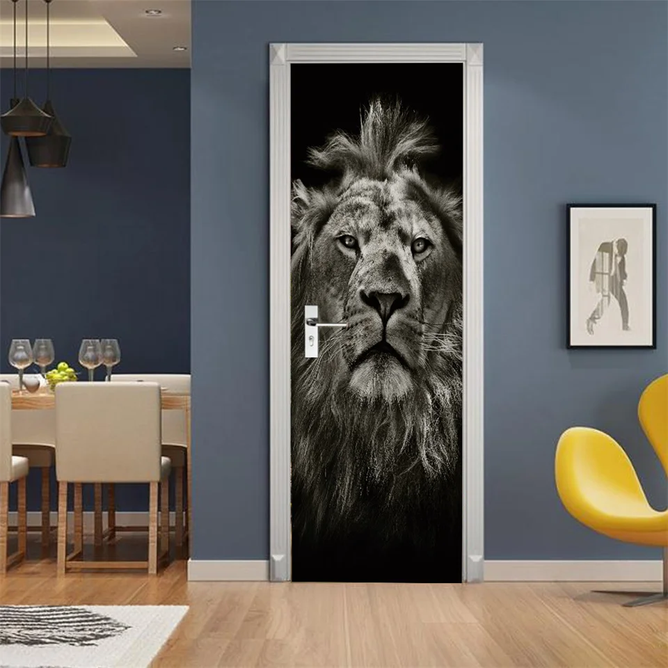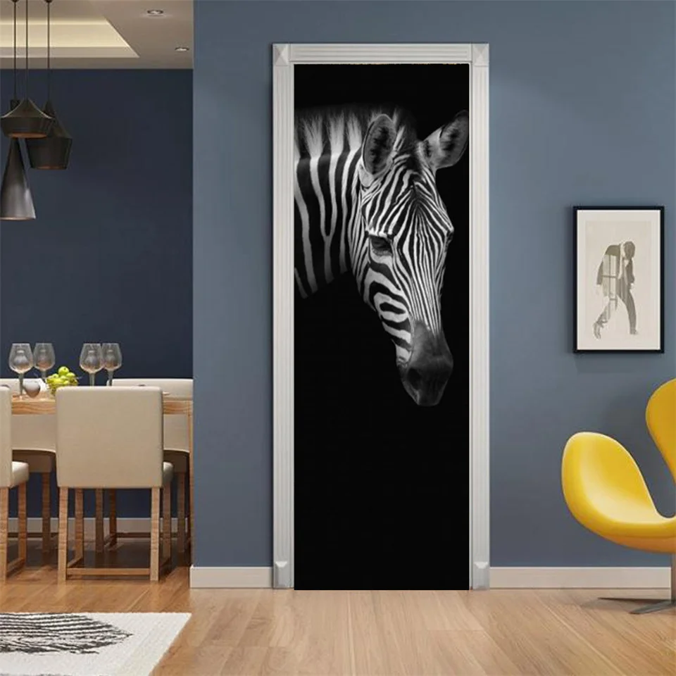 Простой черно-белый декоративный стикер с животными, дверные обои для гостиной, спальни, домашний дизайн, художественный постер, клейкие наклейки на стену