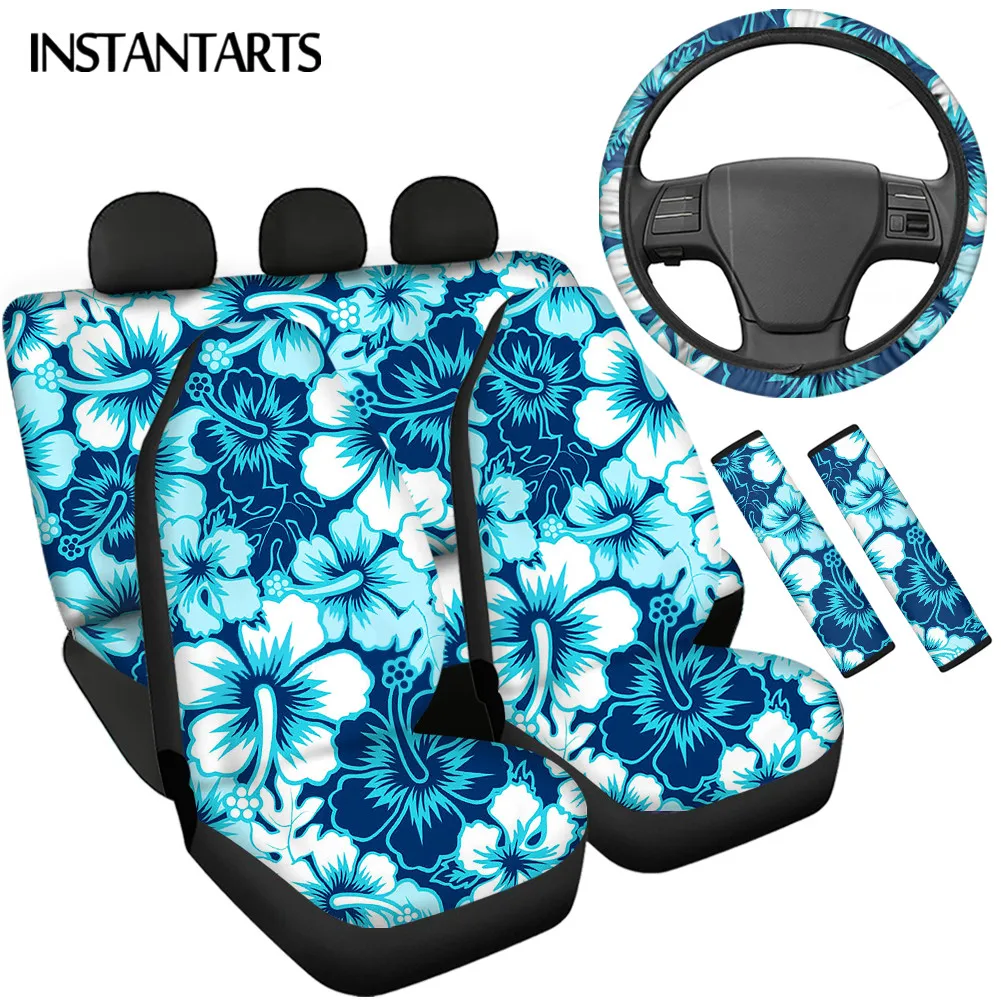 Чехлы INSTANTARTS, гибискус, Гавайские цветы, для салона автомобиля, моющиеся, защита для руля, набор ремней безопасности