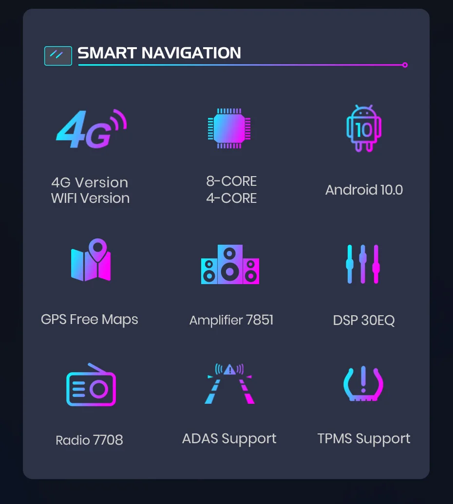 Special FeatureBuilt-In Microphone,4G Network,Wifi Function ,Steering Wheel Control