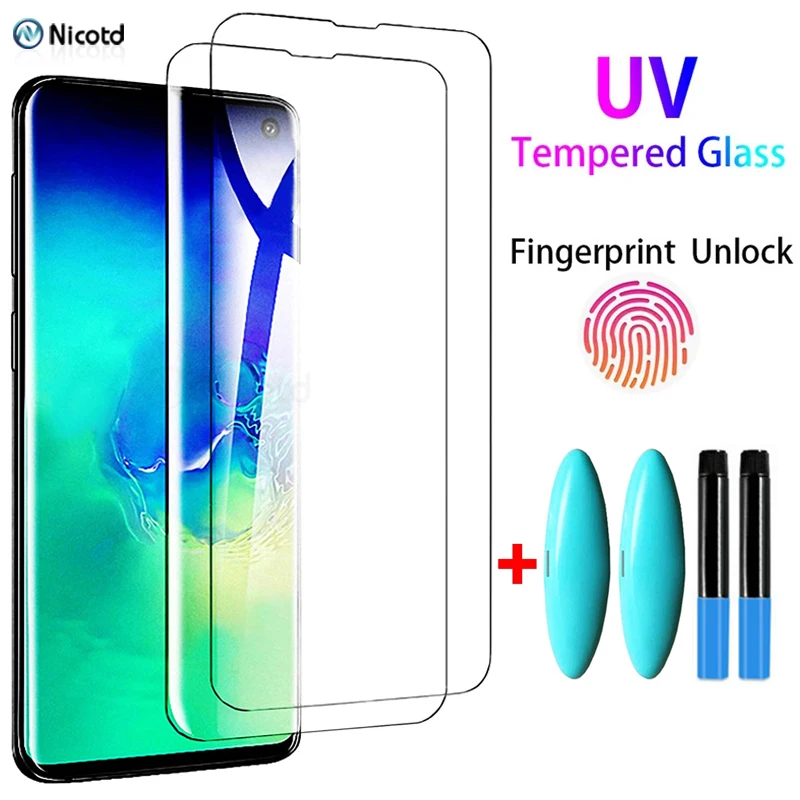 2 шт УФ закаленное стекло для Samsung Galaxy S20 S21 Plus Ultra S10 S9 S8 Plus S7 Edge Galaxy Note 20 Ultra 10 9 8 полное склеенное стекло