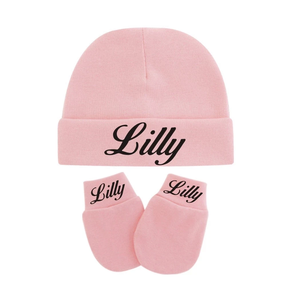 Персонализированные шляпы и перчатки для новорожденных детей 0-3 месяцев, Детские хлопковые шапки, перчатки с защитой от царапин, детские шапки и Варежки Унисекс