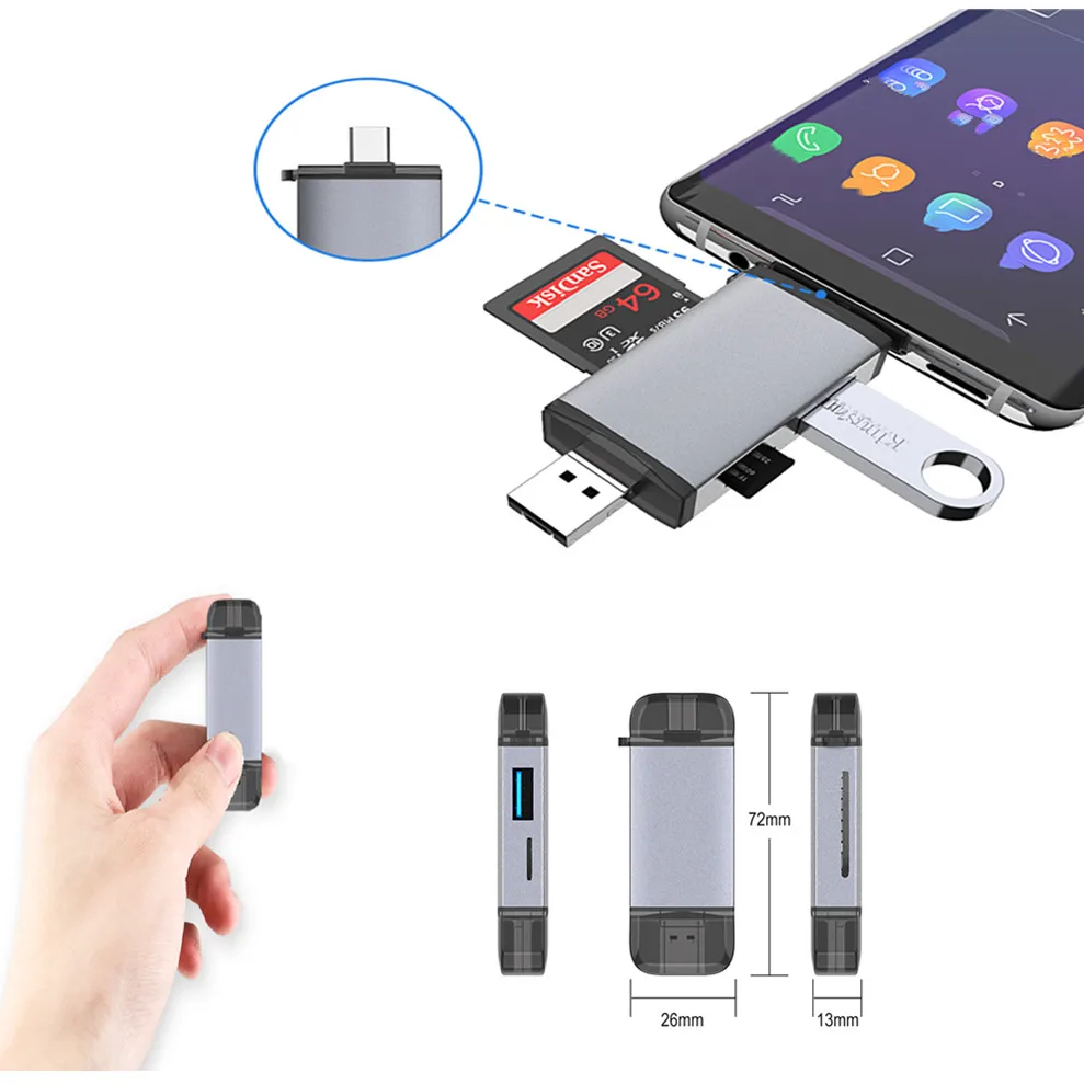 USB C кардридер SDHC SD TF Micro SD OTG адаптер 6 в 1 для Macbook для Huawei Samsung Android Phone PC