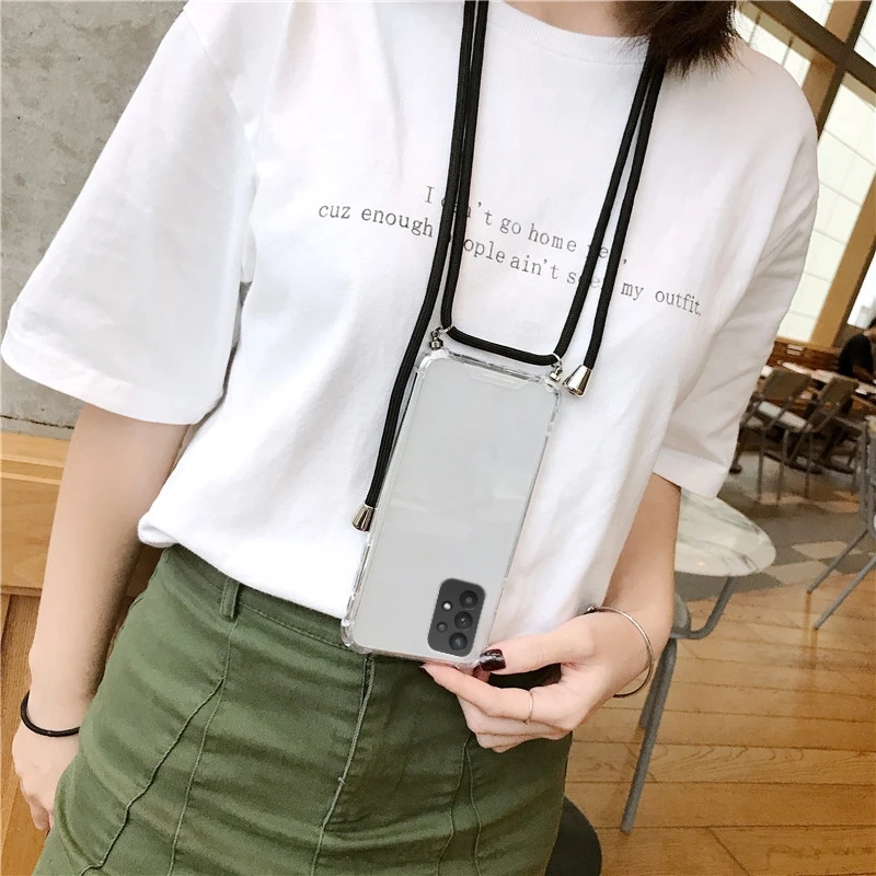 Прозрачный чехол для телефона с цепочкой и ремешком через плечо для Samsung Galaxy A32 A52 A72 A12 A42 5G M02S A02S M31, мягкая задняя крышка из ТПУ