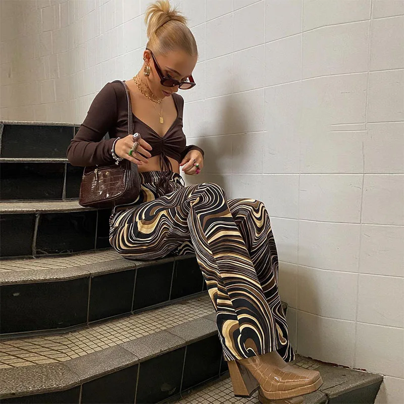Винтажные прямые брюки с пейсли-принтом, женские модные мешковатые брюки с высокой талией, спортивные брюки для бега в стиле Харадзюку, корейский стиль, Iamhotty