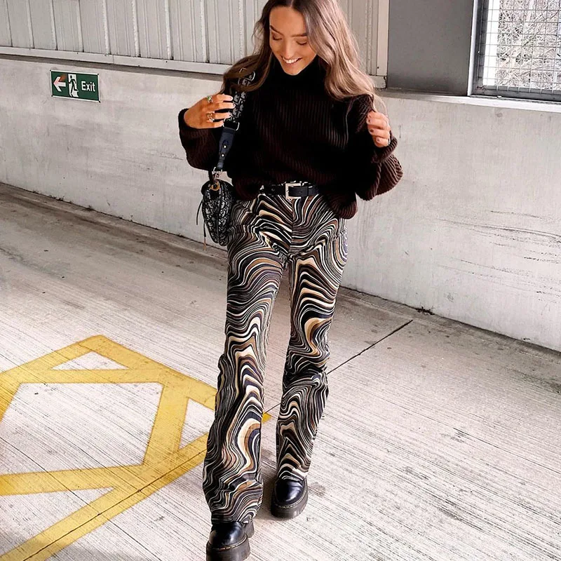 2021 модные широкие брюки с принтом Зебры Женские брюки пикантные с...