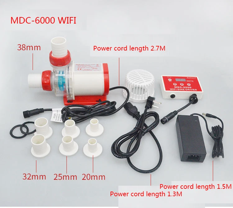 Название продукта: Jebao MDC Wifi DC, погружной водяной насос для аквариума, циркуляционный насос Характеристики: Модель: MDC-5000, MDC-6000, MDC-8000, MDC-10000 Номинальная мощность: 40 Вт, 45 Вт, 60 Вт, 80 Вт Напряжение: 24 В Высота: 4,0 м, 4,5 м, 5,2 м, 6,0 м Емкость: 5500л/ч, 6200л/ч, 8000л/ч, 10000л/ч Класс защиты: IPX8 Особенности: -Сверхтихая работа. -Высокая производительность с инновационным электронным двигателем и энергосбережение до 65%. -Электронное Обнаружение IC, автоматическая защита от отключения питания без воды. -С износостойким керамическим стержнем, увеличенным сроком службы. -WIFI + ручной контроллер. Посылка1 водяной насос с Wi-Fi серии MDC