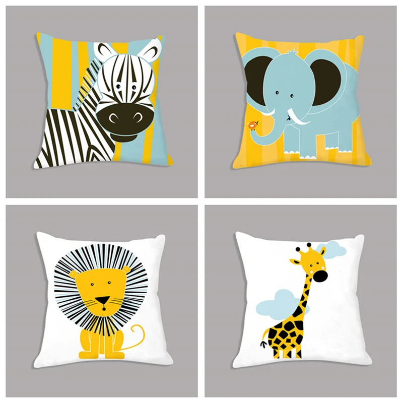 Без рукавов с изображением жирафа, льва, слона, с животным принтом, белые плюшевая подушка для сиденья диванные подушки 45х45см наволочка для декоративной диванную подушку в детской комнате