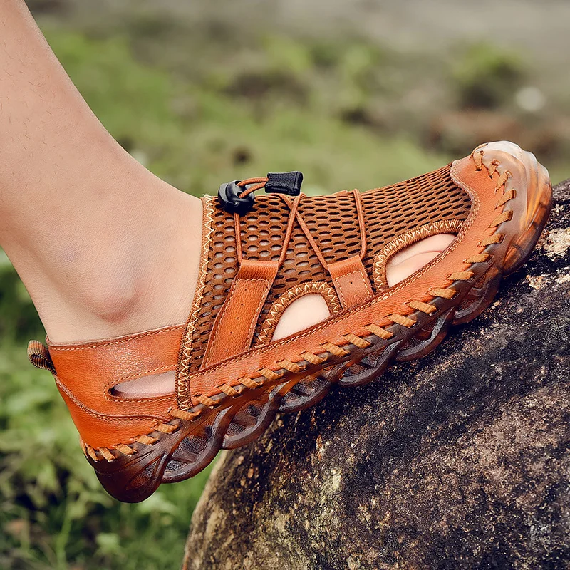Мужские кожаные кроссовки, летние сандалии, Нескользящие походные туфли, модная пляжная обувь, для рыбалки и воды