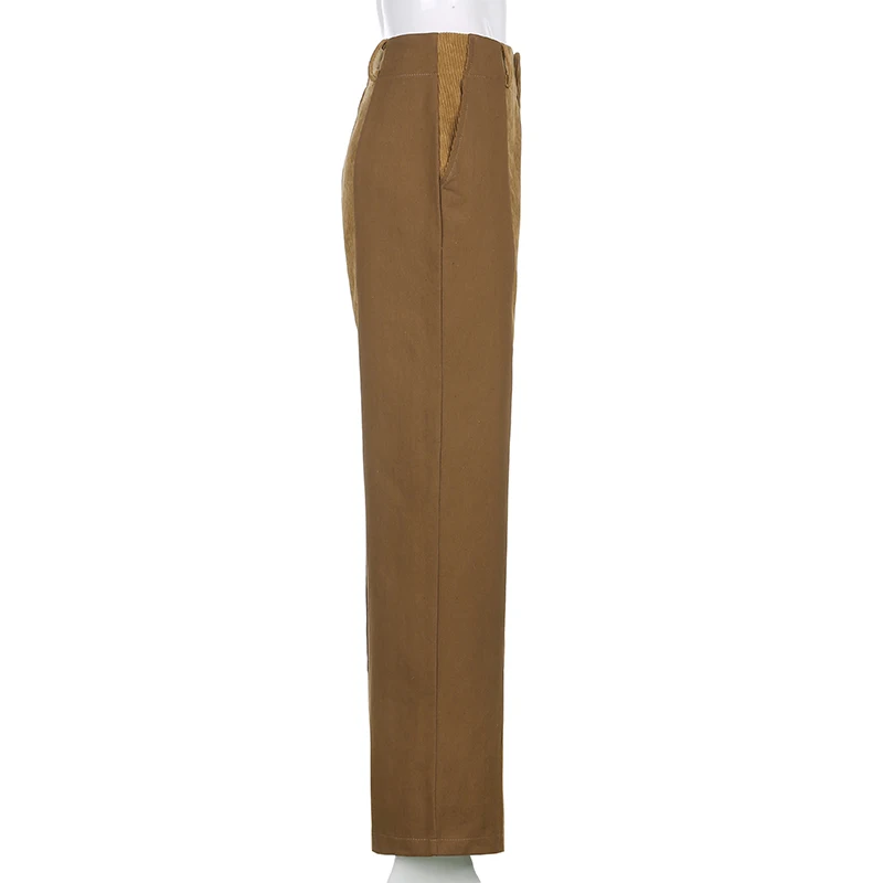 Брюки женские вельветовые в стиле Харадзюку, модная винтажная уличная одежда в стиле пэчворк, прямые пикантные брюки с широкими штанинами и высокой талией, Y2k, на осень