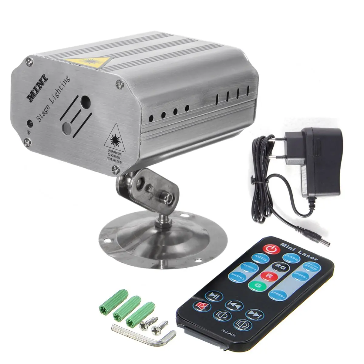 Посылка включает в себя:Сценическое освещение-1 шт.1 пульт дистанционного управления1 х штепсельная вилка европейского стандарта (также поставляется с бесплатным адаптером в соответствии с вашей страной)1 карданный держатель1 x Руководство пользователя