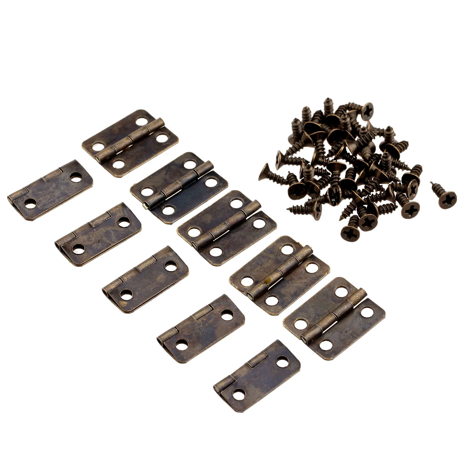 50 шт. 16*13 мм Мини Мебель Декоративная петли ювелирные изделия брелок вина деревянный ящик для шкафных петель с винтами античная бронзазолото