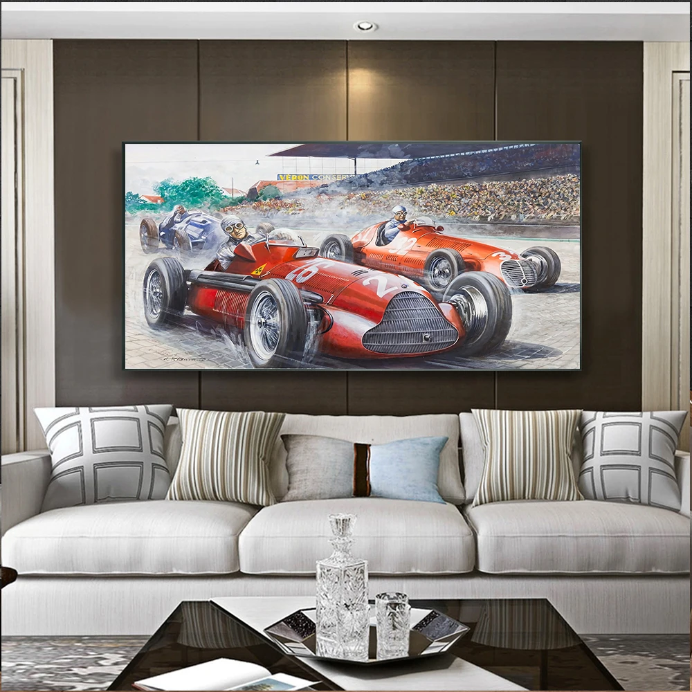 Винтажный постер и печать на автомобиле в игре Ferrari Classic F1, гоночный автомобиль, Картина на холсте, настенное искусство, роспись, домашний декор
