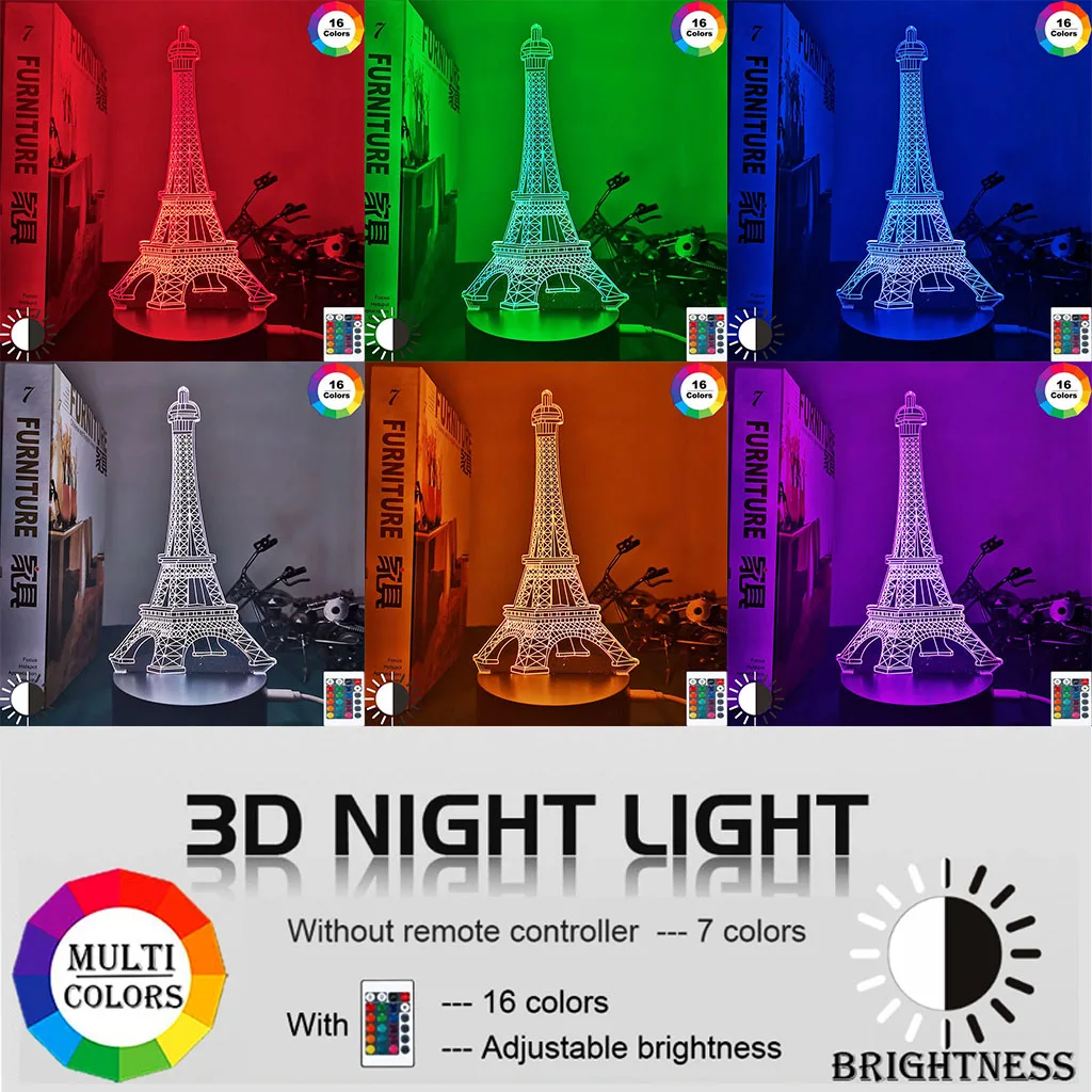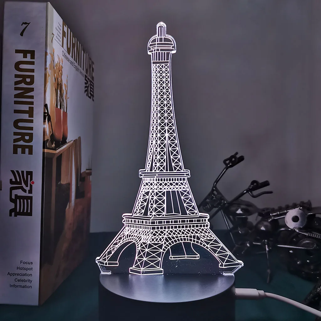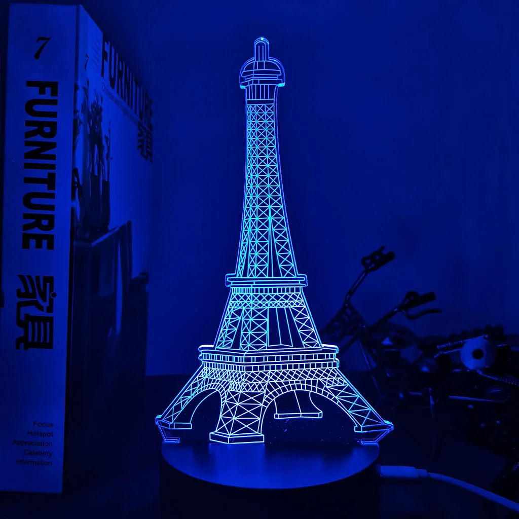 Парижская Эйфелева башня 3d иллюзия светодиодный Детский Светильник изменение цвета Декор для спальни s уникальный подарок на день рождения настольная лампа Usb