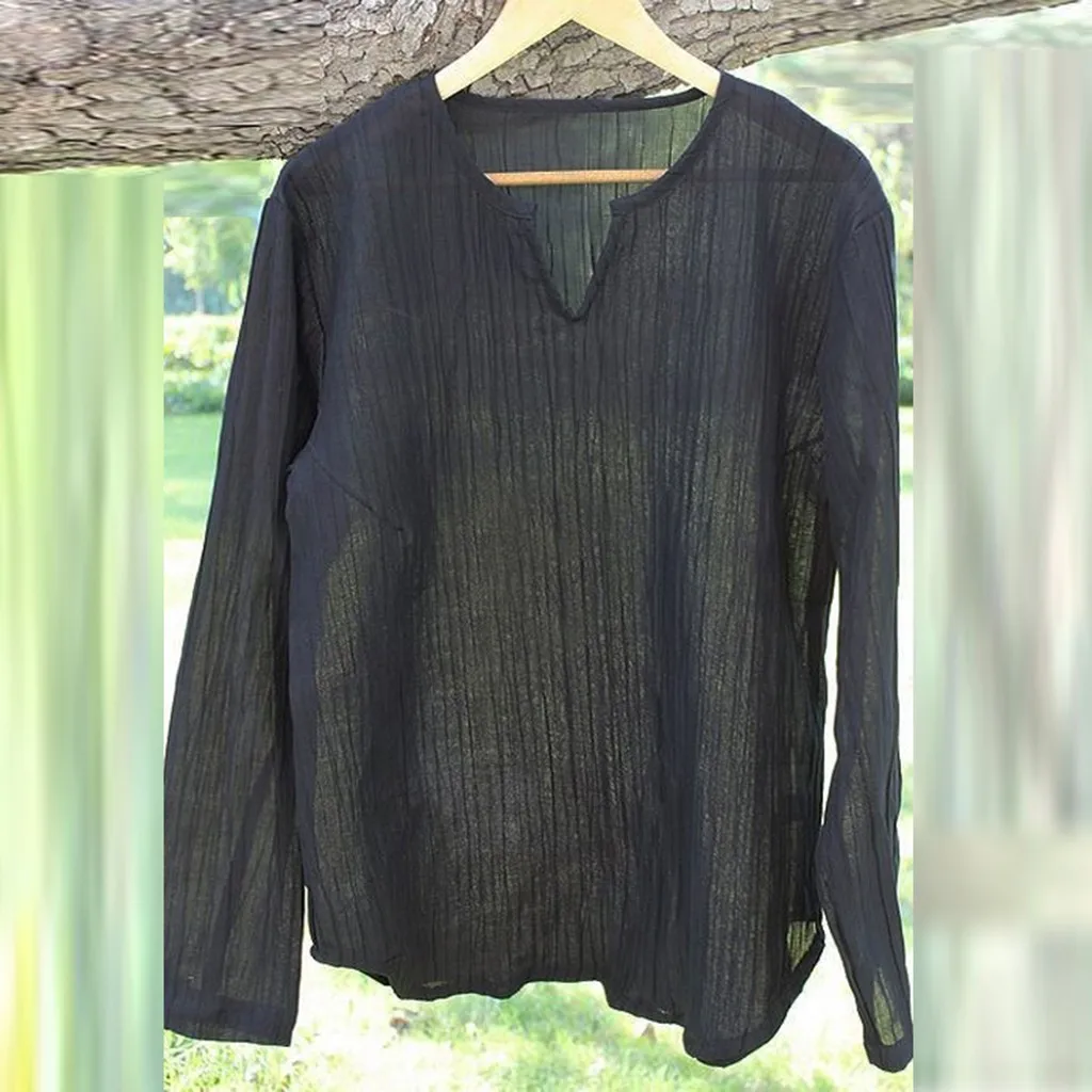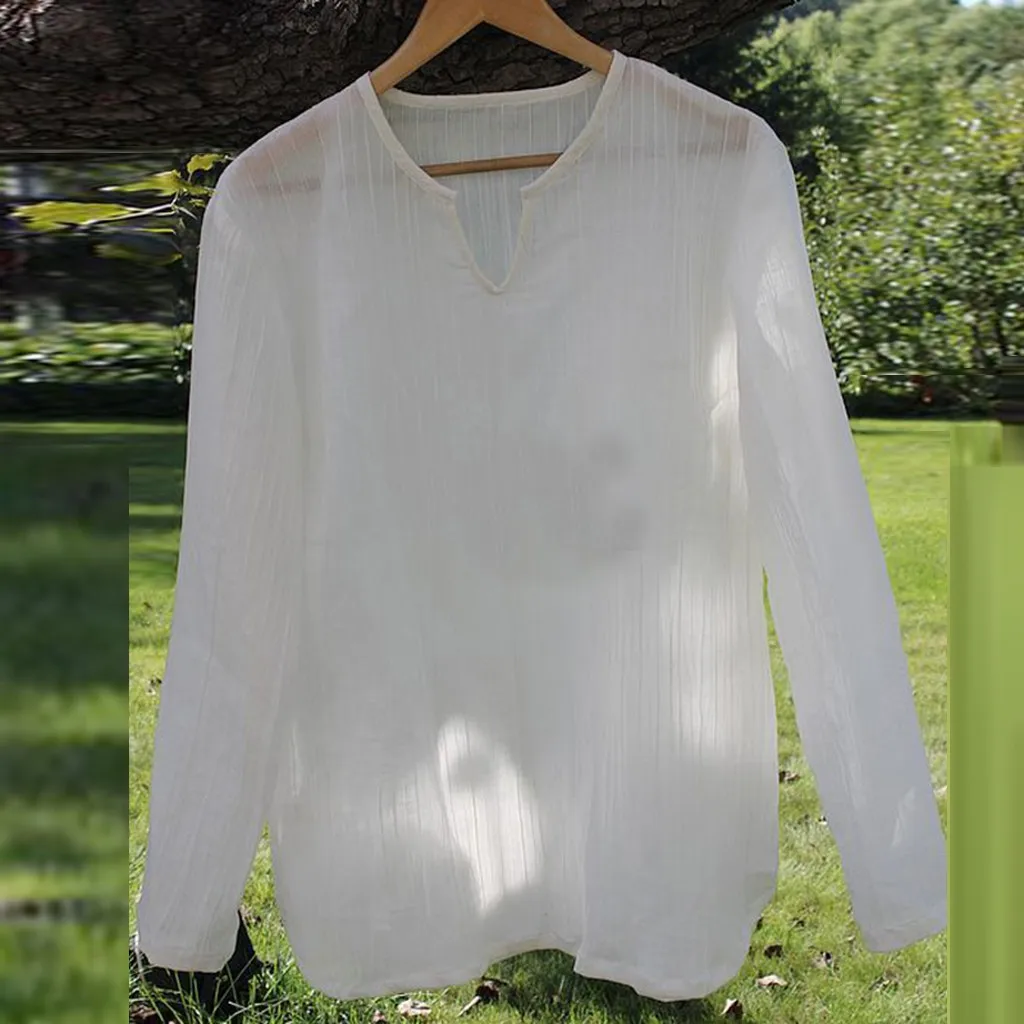 Рубашка Мужская льняная с длинным рукавом, короткая дышащая удобная однотонная Свободная Повседневная Блузка в стиле бохо, Гавайская футболка