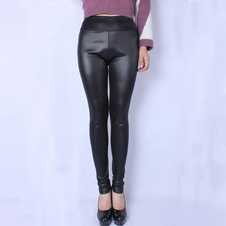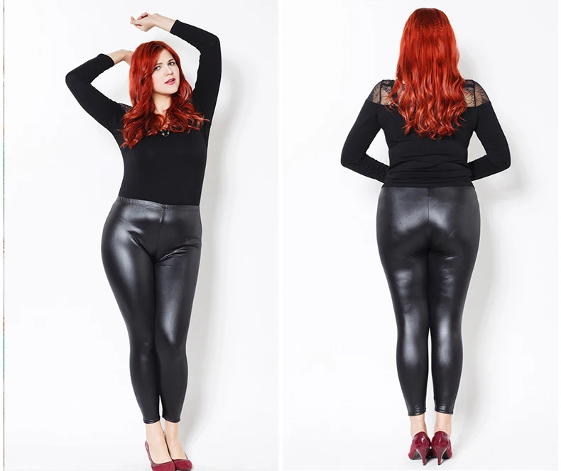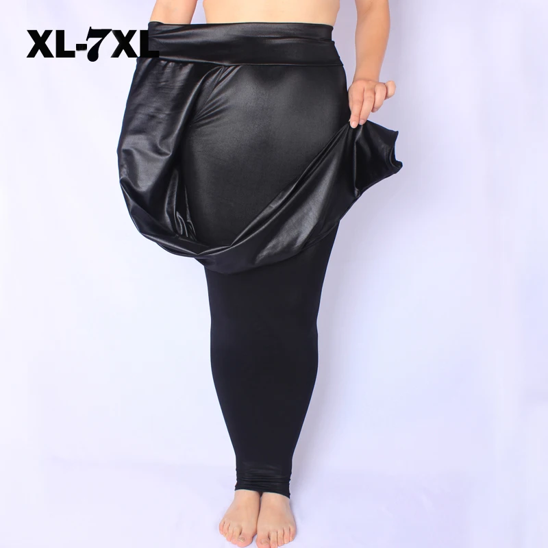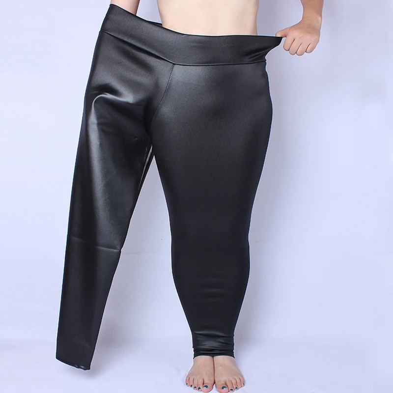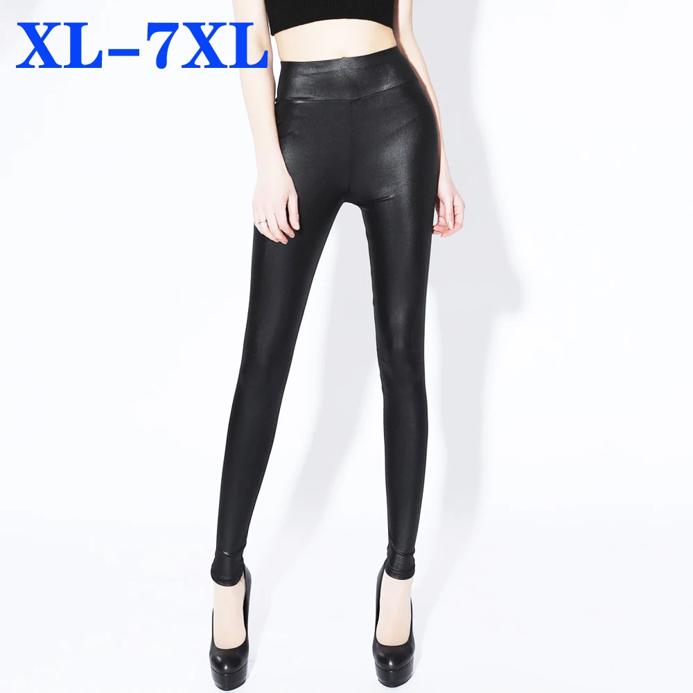 Женские леггинсы размера плюс 5XL 6XL 7XL, черные леггинсы из искусственной кожи с высокой талией, эластичные облегающие брюки-карандаш