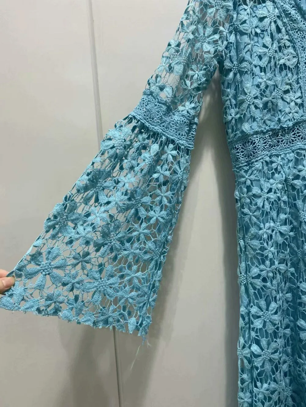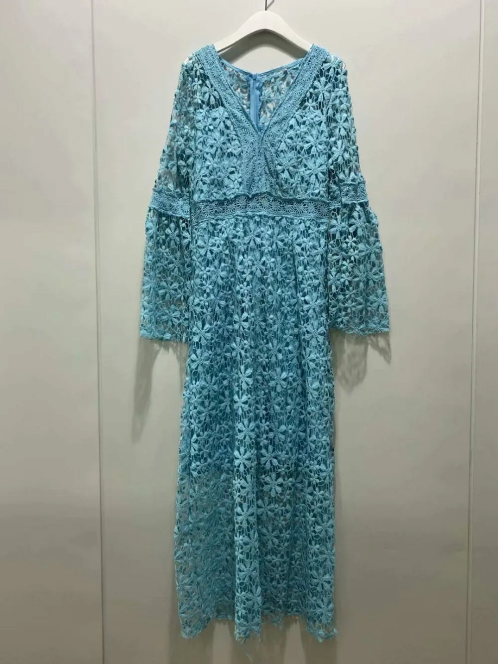 Происхождение: CN (происхождение)Сезон: летоВырез: v-образный вырезСтиль рукава: расклешенный рукавУкрашение: кружевоСтиль: винтажныйДлина платья: до щиколоткиМатериал: кружевоСилуэт: трапециевидныйВозраст: 18-35 летНомер модели: sweetwo96gДлина рукава (см): полнаяПол: Для женщинТалия: империяТип узора: однотонный
