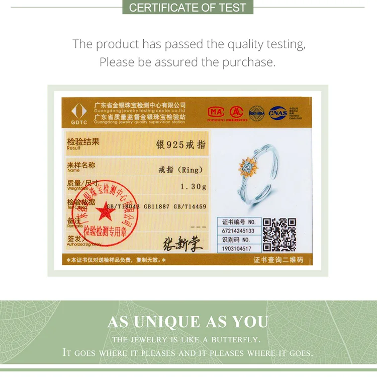 Номер Сертификатаbamoer fashion jewelry