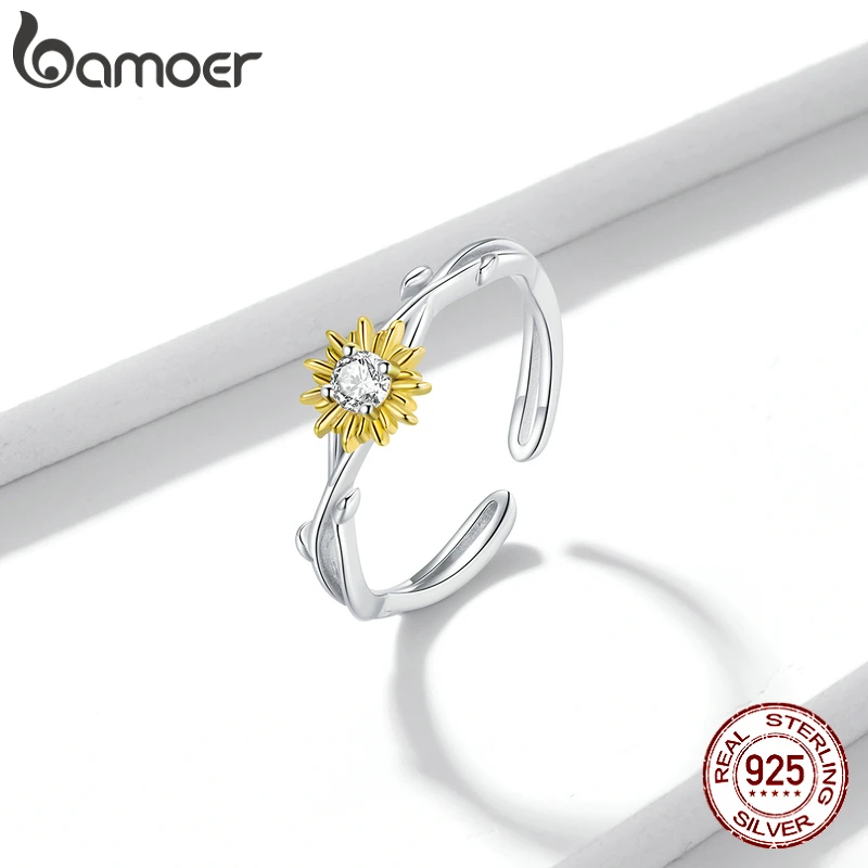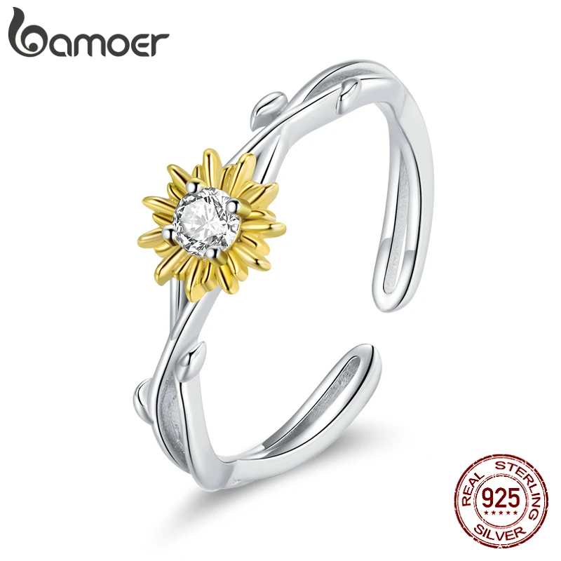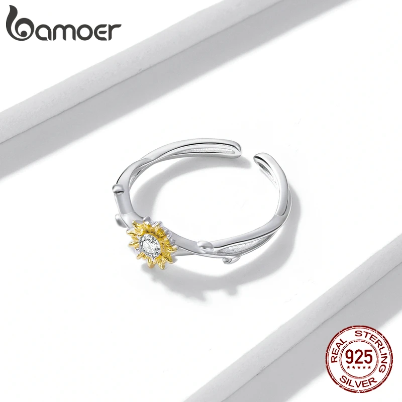 Серебряное кольцо с маргариткой bamoer, регулируемое кольцо с блестящими цветами из серебра 100% 925 пробы, ювелирные изделия BSR175
