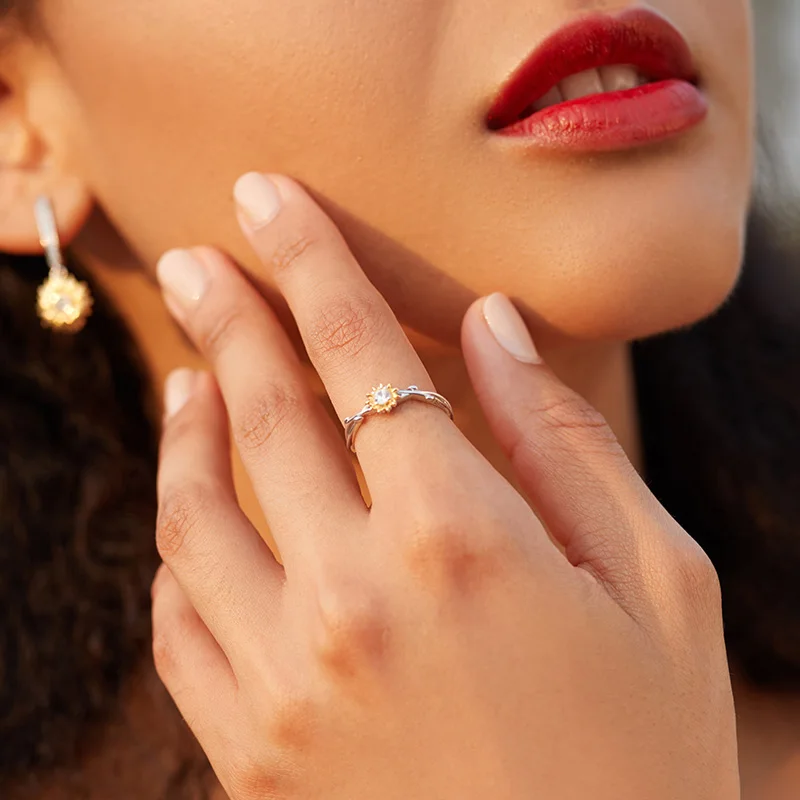 Материал: S925 + покрытие паве CZ + позолота + Платина Ширина: 0,2 см, размер цветка: 0,6*0,6 см Вес: около 1,3 г Описание: Естественная форма маргаритки, раскалывание цвета позолоченный процесс, чтобы сделать лепестки маргаритки более яркими и яркими, так что ваш темперамент очаровательен. .