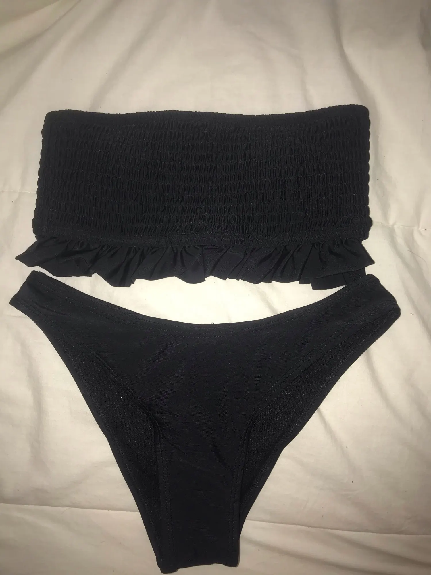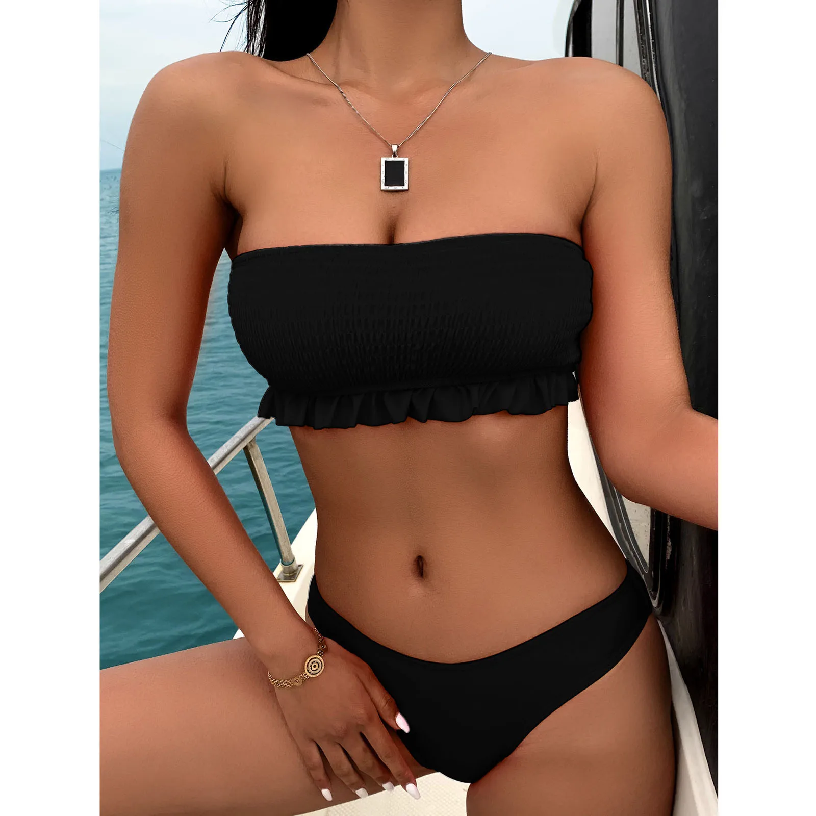 2021, однотонное бикини без бретелек, с низкой талией, сексуальный комплект бикини, женский Купальник с рюшами, женский Купальник, Мягкий купальный костюм, Купальник # T4G
