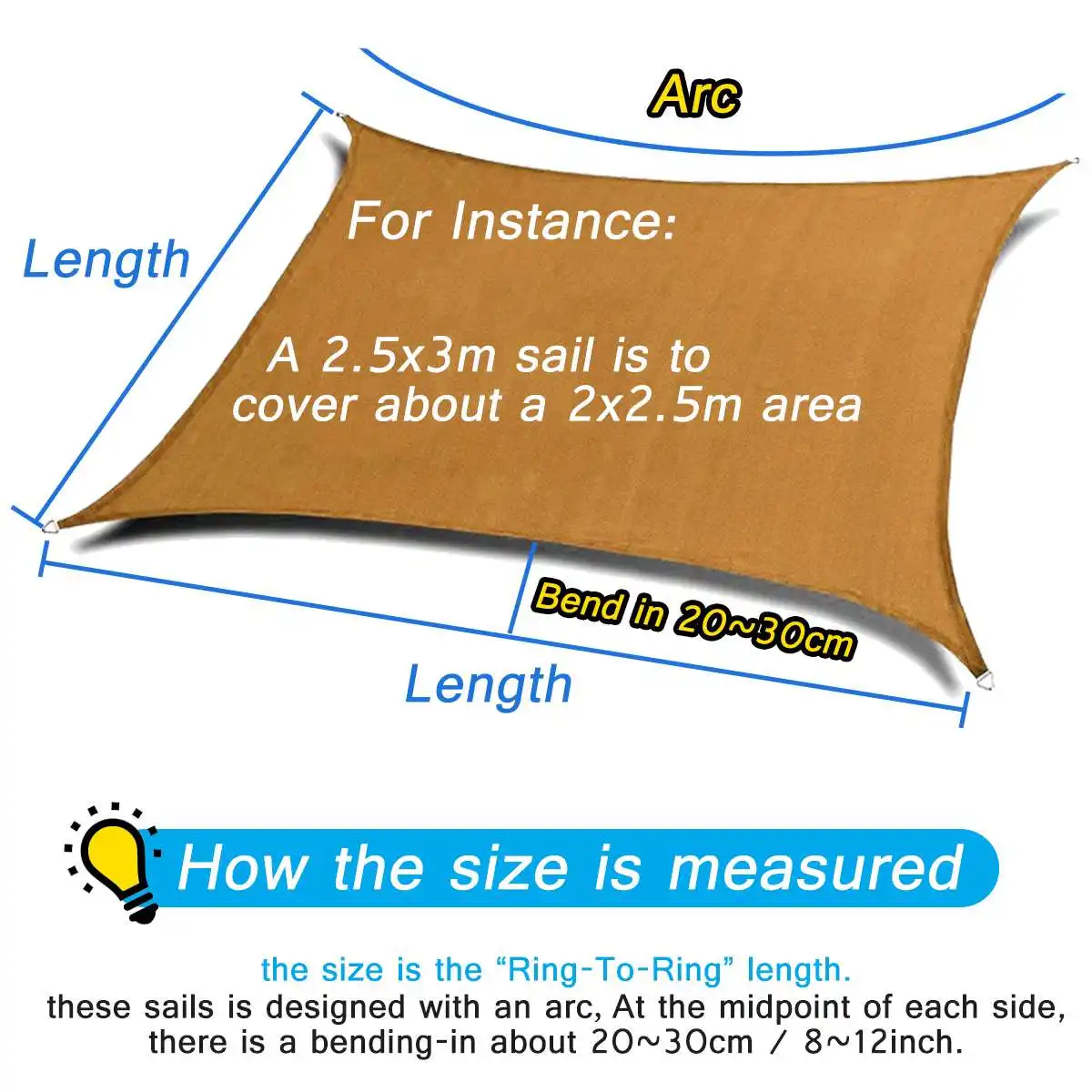 Спецификация:Материал: 400D 160GSM полиэстер ткань ОксфордЦвет: бежевый светильникФорма и размер:①Square:12x12 "/3,6 м x 3,6 м13 'x 13' / 4 м x 4 м16,5 "x 16,5"/5 м x 5 м②Rectangle:6,5 'x 13' / 2 м x 4 м6,5 'x 16' / 2 м x 5 м8 'x 10'/2,5 м x 3.м10 "x 16,5 ' / 3.m x 5 м10 "x 19,5 ' / 3.m x 6 м13 'x 16' / 4 м x 5 мРазмеры канатов: L = 1,5 м, D = 3,5 ммМатериал канатов: нейлонРазмер d-колец: M5 (D = 5 мм)Материал d-колец: нержавеющая сталь 316Особенности:400D 160GSM полиэстер ткань Оксфорд:①С водонепроницаемым покрытием, 98% водонепроницаемость.②Soft и яркий цвет③ Светильник от солнца 99% и ультрафиолетовые лучи заблокированы,④Защита от ветра, тепла, холода, окисления, коррозии и радиации.⑤Легкий вес, легко складывается и переносится, лучше всего подходит для кемпинга, паники и сына⑥Около половины веса 280GSM PE один, нежный, но чрезвычайно прочный.Очень прочный с гарантией 3-5 лет.Легко устанавливается и снимаетсяПростое обслуживание, легко чистить губкой и тканью.Идеально подходит как охлаждающий оттенок, живописный теневой дорожный оттенок, авто оттенок, растительный оттенок во дворе, гардерн, балкон, гараж, палуба, патио, бассейн или развлекательная зона и так далее.Посылка включает в себя:1 * теневой парус4 * веревкиПримечание:1. В середине каждой стороны имеется изгиб-около 20 ~ 30 см/8 ~ 12 дюймов. Так, например, в том случае, если вы хотите покрыть 1,5x3 м, балкон, вы должны возможность стать обладателем этого товара, по крайней мере, 2x4m.2. Водонепроницаемый парус для теней из полиэстера в основном применяется для водоотталкивающего и солнечного затенения, но не для проветривания. Более того, более темный оттенок паруса, как правило, лучше в солнцезащитных оттенках.3. Из-за разницы между различными мониторами изображение может не отражать фактический цвет изделия.4. Пожалуйста, установите парус в определенном наклоне, таким образом, чтобы он позволял сильному дождю или снегу сбегать, а также сделать парус более привлекательным.