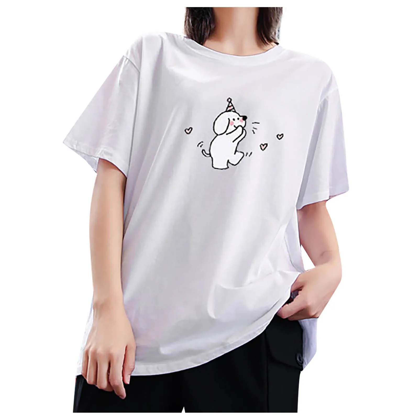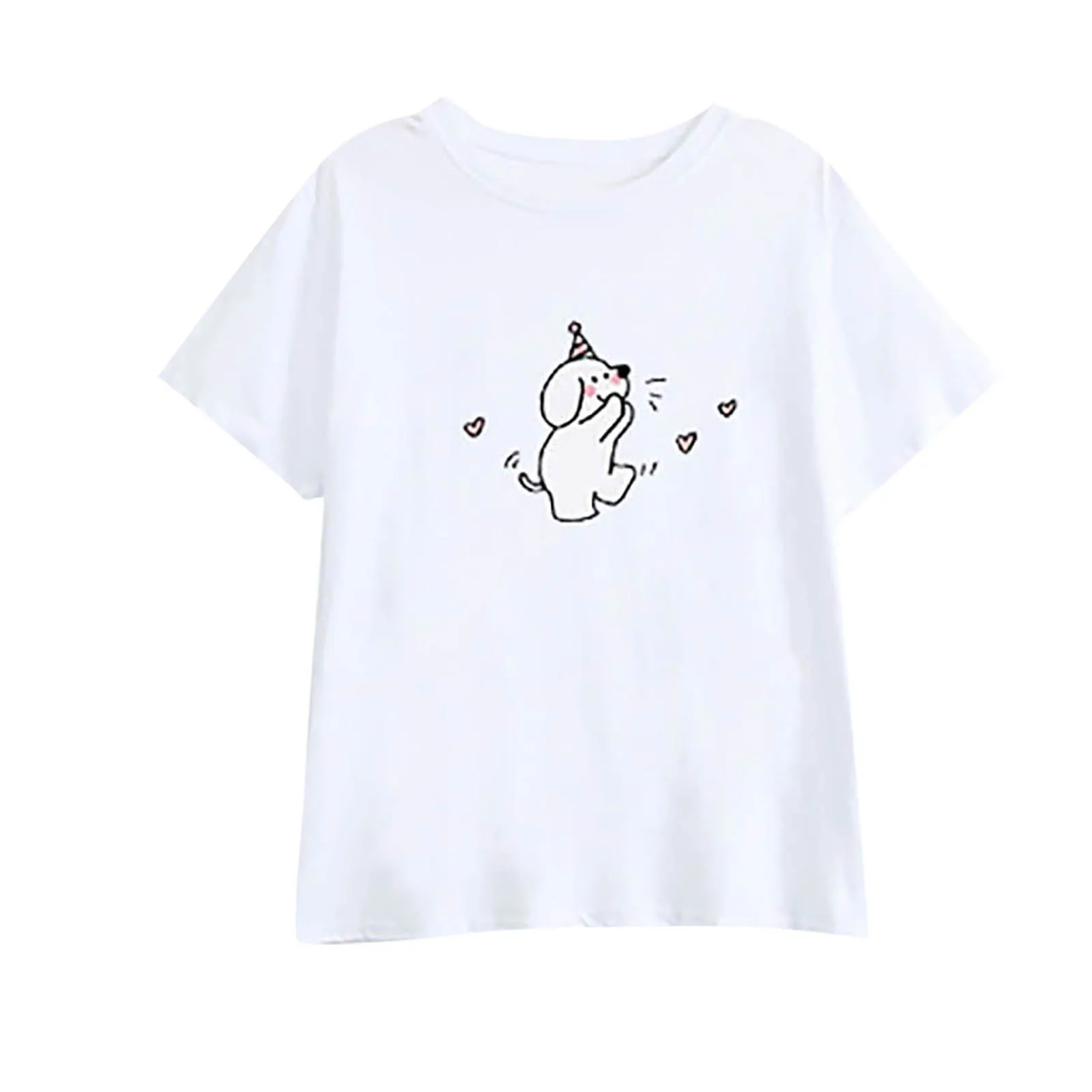 Женская блузка в стиле Харадзюку, с рисунком собаки, короткий рукав, 2021 # T5P