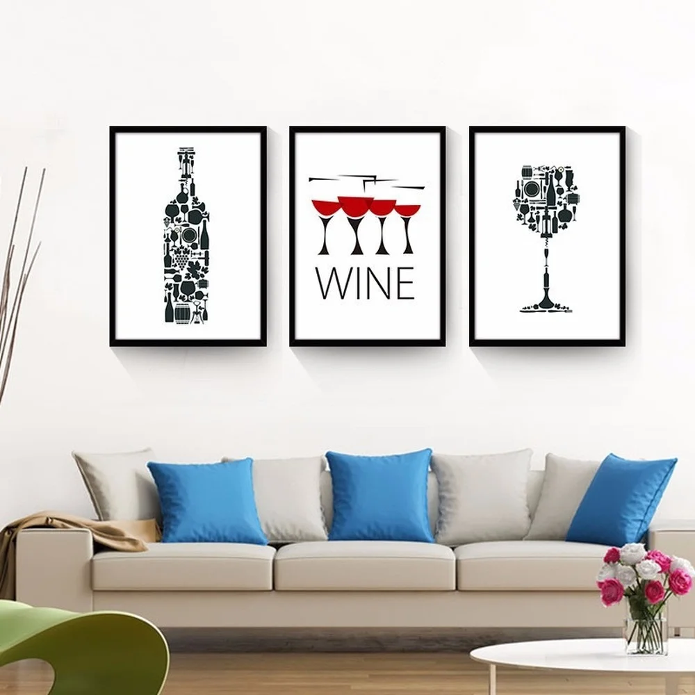 Nordic простой черный, белый цвет бутылки вина Картина на холсте для творческих личностей вина постер для стекла Гостиная Спальня настенный художественный Декор