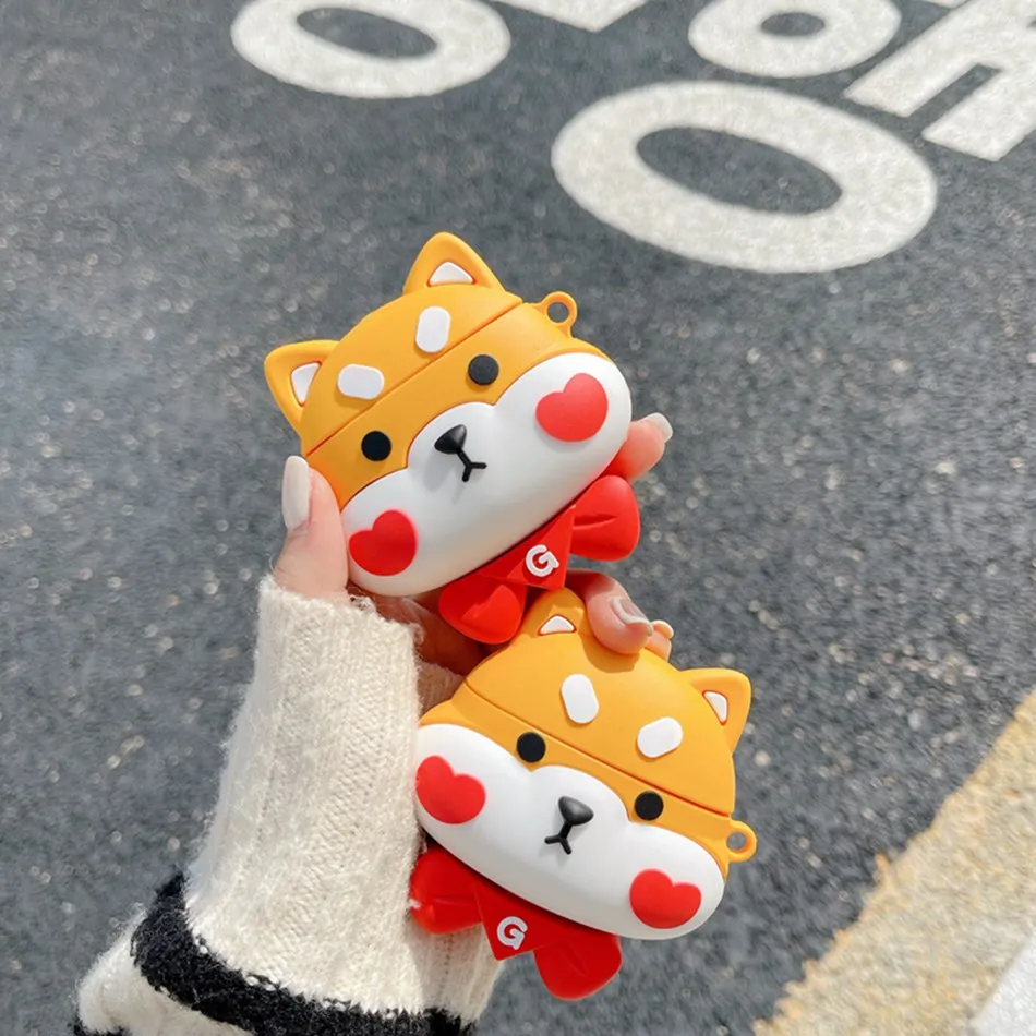 Милый мультяшный 3D чехол для AirPods 1 2 с изображением собаки Шиб...
