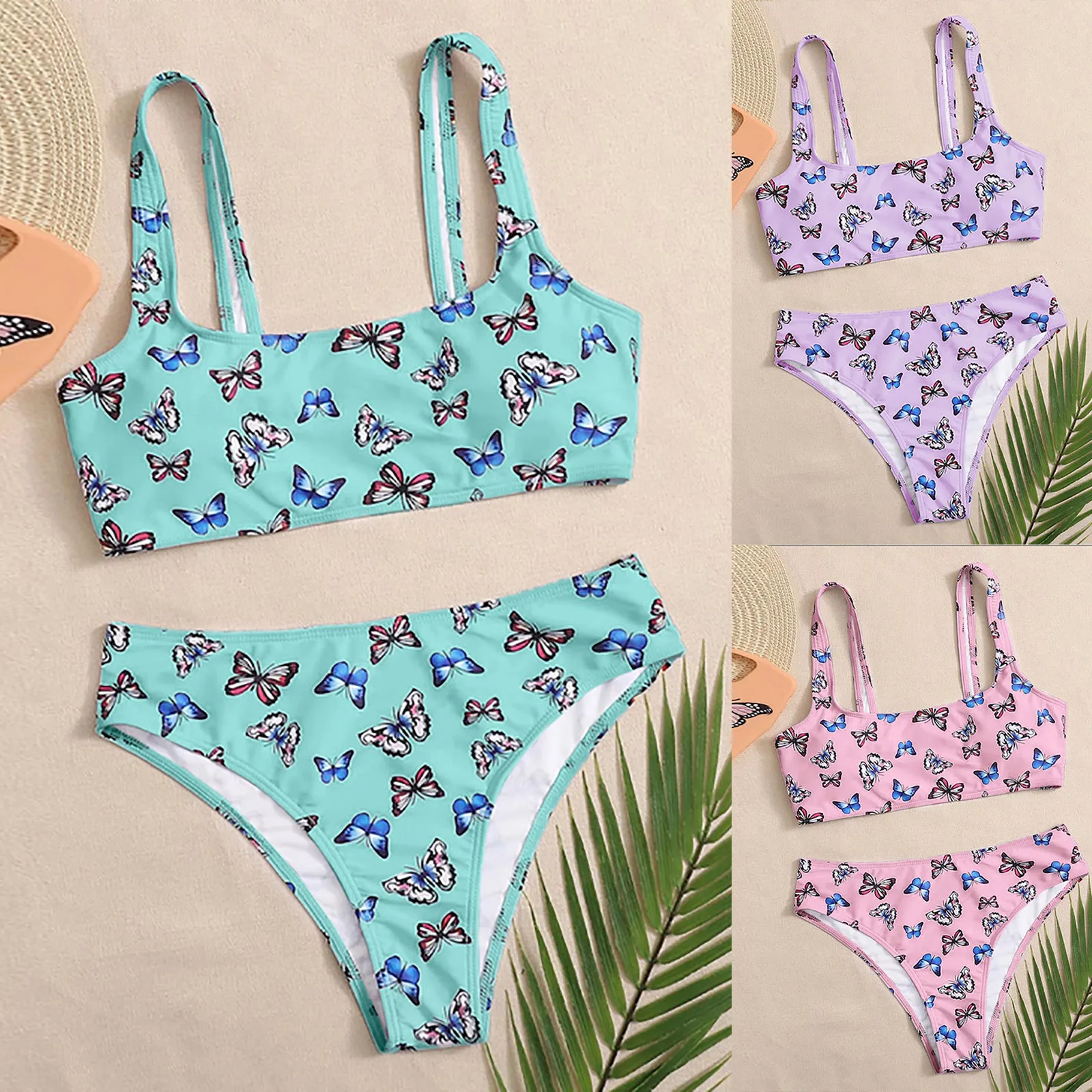 Пикантная обувь с принтом бабочка с оборками стринги бикини 2020 Для женщин, купальник, женский купальник, микро бикини комплект ванный комплект Купаль