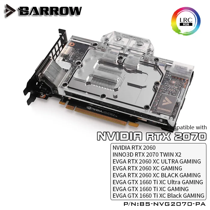 Водяной блок BARROW для NVIDIA RTX2070 Founders EditionReference EditionEVGA 2060GTX1660Ti, с полным покрытием, блок GPU D-RGB 3PIN