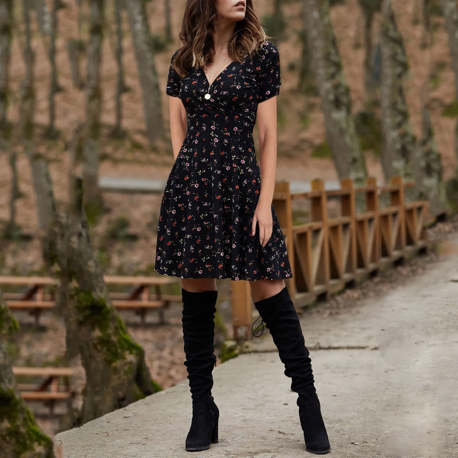 Женское летнее сексуальное платье с V-образным вырезом и коротким рукавом, Пляжное Платье Бохо с цветочным принтом в стиле ретро, элегантное вечернее Клубное Повседневное платье, 2021