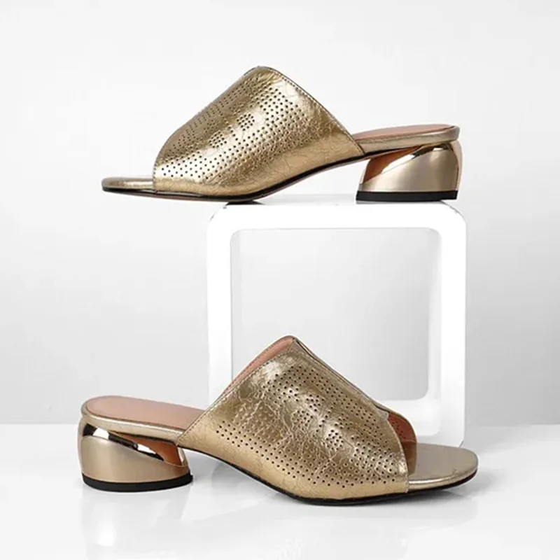 Мюли женские на квадратном каблуке, серебристые сандалии без застежек, с открытой спиной, открытый носок, короткий каблук, летние босоножки, золотистые, размеры 42