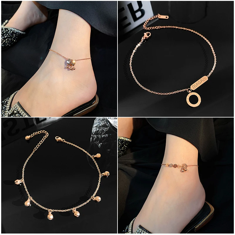 Женский ножной браслет, классический браслет из титановой стали с римскими цифрами, корейская бижутерия, пляжный аксессуар для щиколотки, 2021