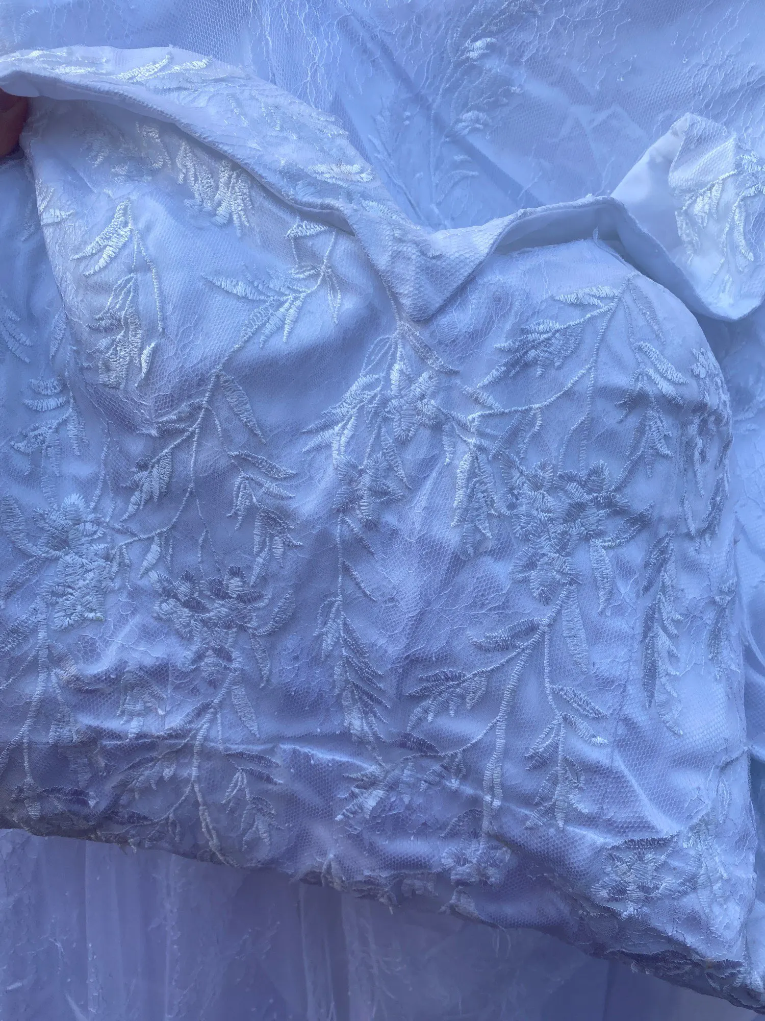 Мне очень понравилось платье и я получил очень много комплиментов. Отличное платье по цене. Я получил раздражение кожи от материала на груди. Однако, мне понравилось мое платье. Я надевал это для продления нашего брака, и когда двери в церковь открылись, мой жесткий,