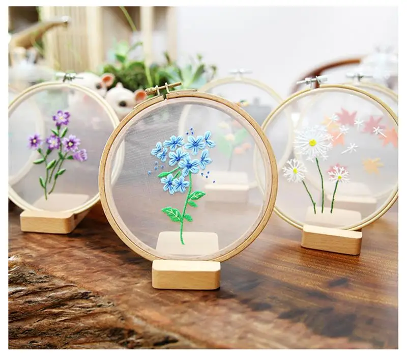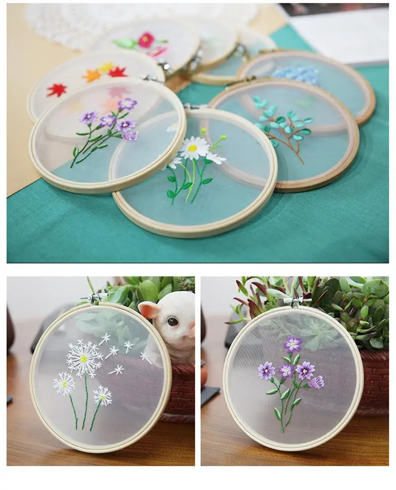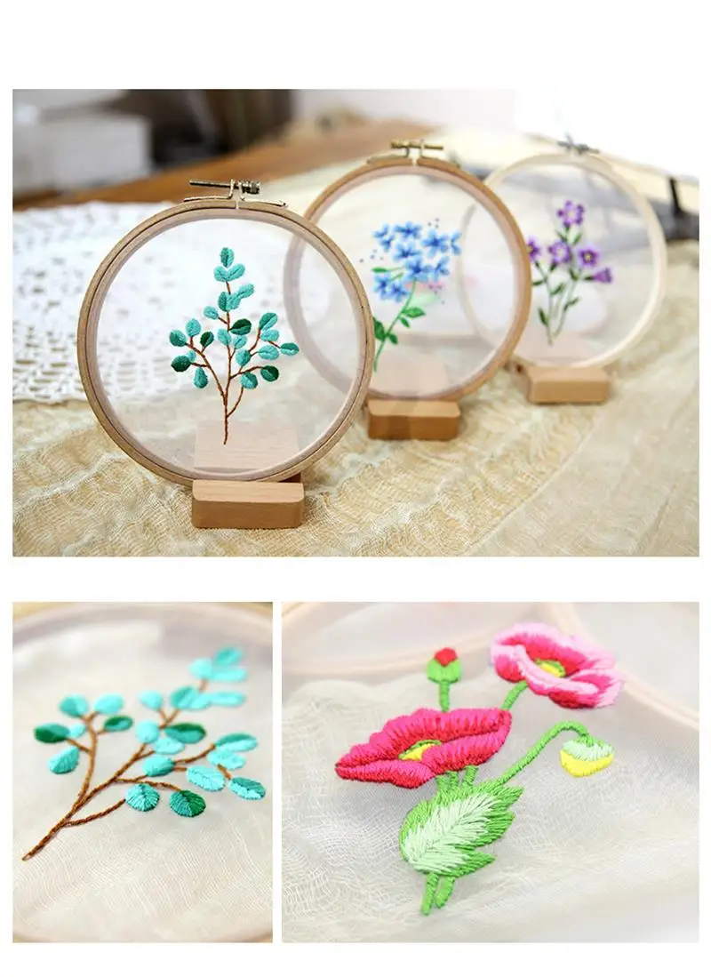Набор для вышивания с изображением цветов, растений, круглая ткань,...