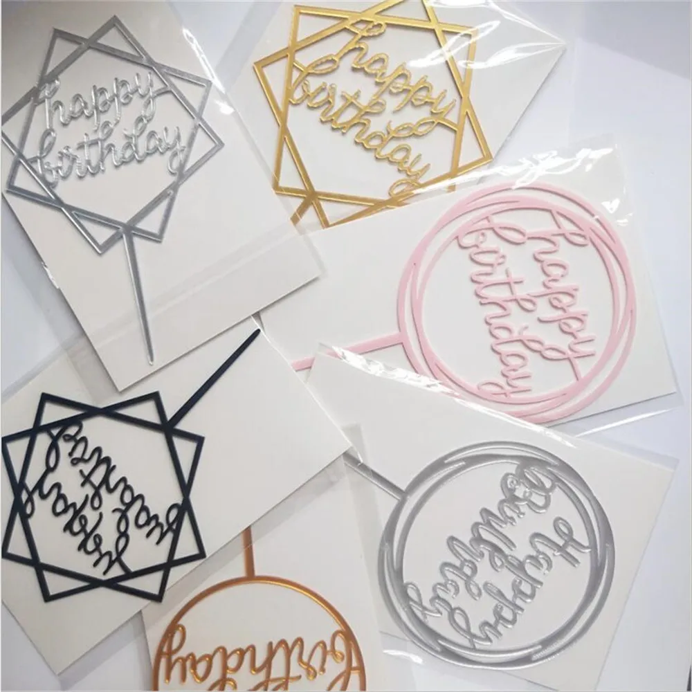 Новый Цветной цветы Топпер для торта С Днем Рождения золотистое акриловое на день рождения вечерние десерт украшение для вечеринки будущей матери для выпечки