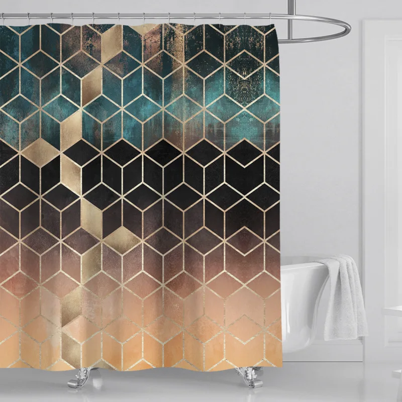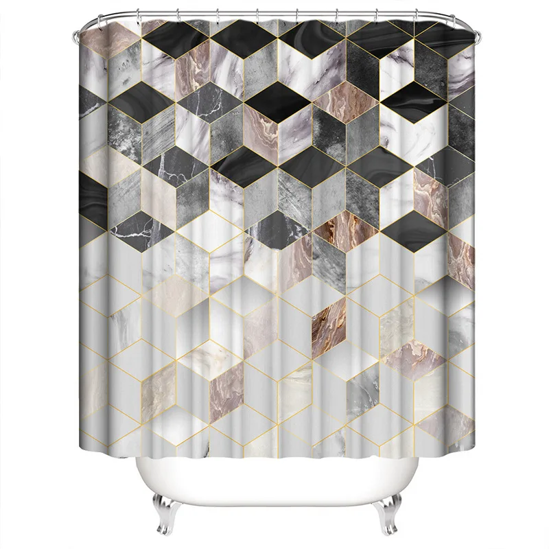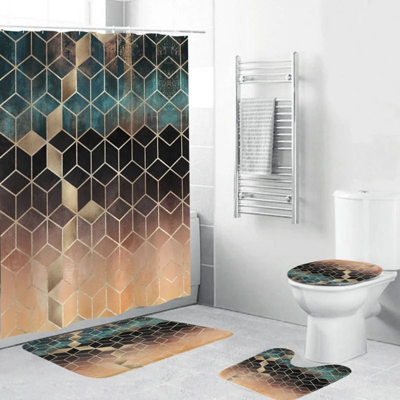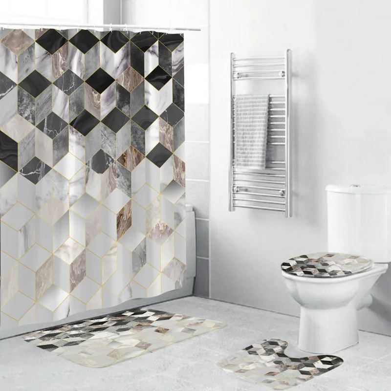 Занавеска для душа с градиентным мраморным узором и набор ковриков для ванной с геометрическим узором, коврик для туалета, моющееся сиденье для унитаза покрытие, коврик