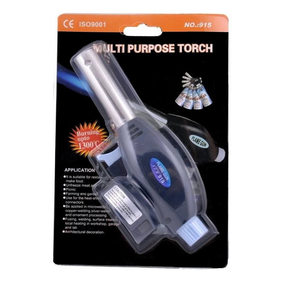 Газовый резак FLAME GUN 915 с пьезоподжигом.— Использование газа 80 гр./ч.— Размер 150х45х45 мм— Вес 160 г— Топливо вид жидкий бутановый газ.