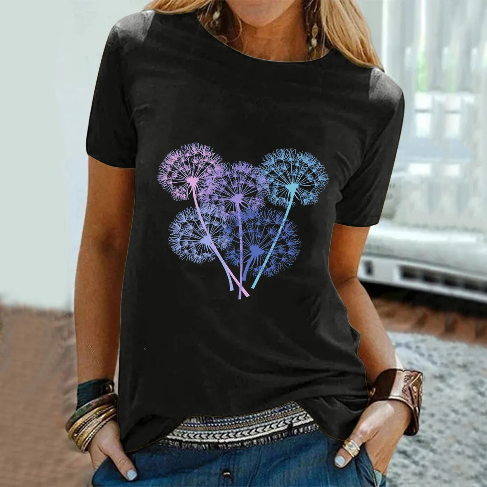 Цветная забавная женская футболка с принтом одуванчика, повседневная женская футболка с коротким рукавом, летняя свободная футболка, топы для женщин, женские футболки