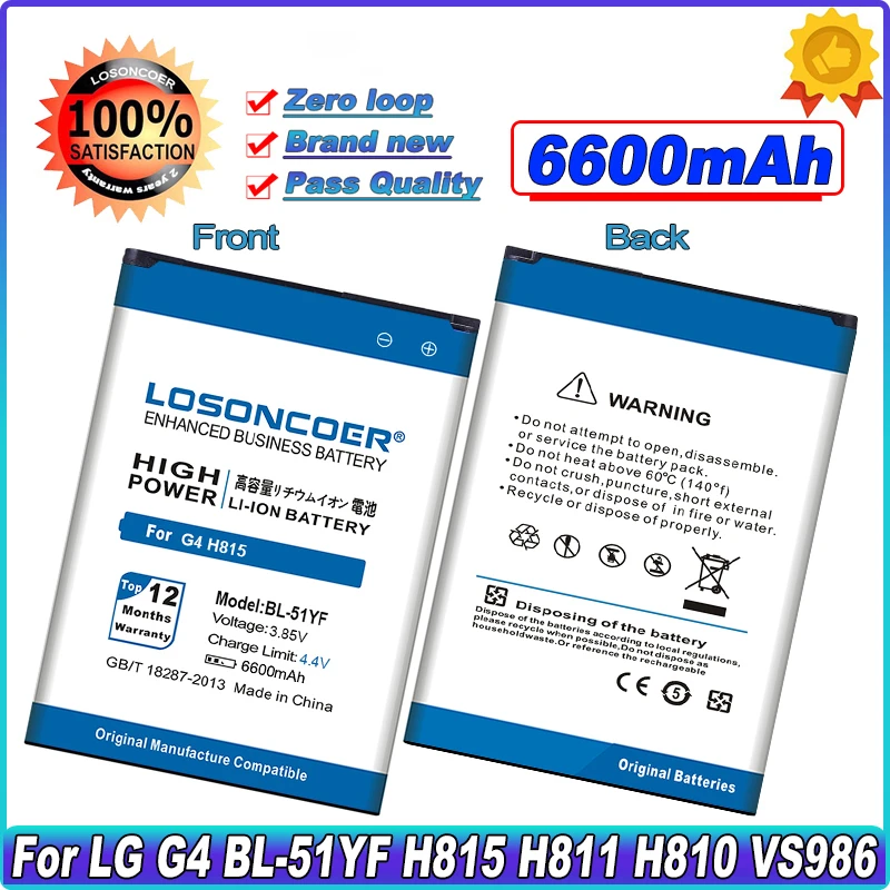 LOSONCOE 6600 мАч BL-51YH BL-51YF батарея для LG G4 батарея H815 H818 H819 VS999 F500 F500S F500K F500 V32 телефон BL 51YF