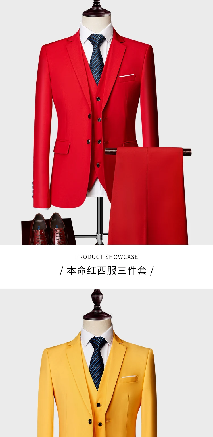 Мужской свадебный костюм, Узкий однотонный пиджак, брюки, жилет, 3 шт.