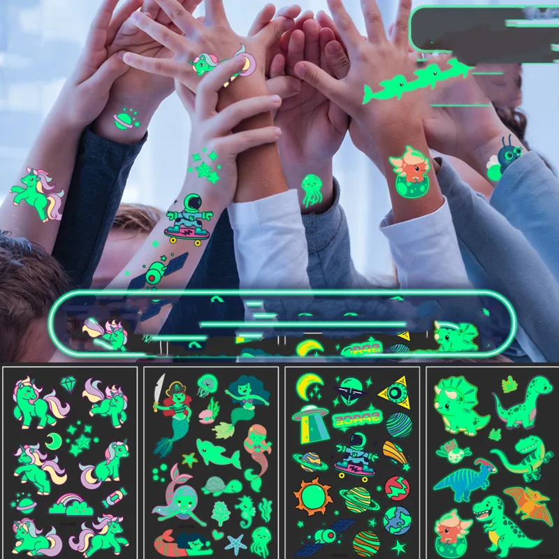 Наклейки-татуировки светящиеся для детей, временные искусственные татуировки, светящаяся паста на лицо, руку, ногу, для детей, боди-арт наклейка с русалкой