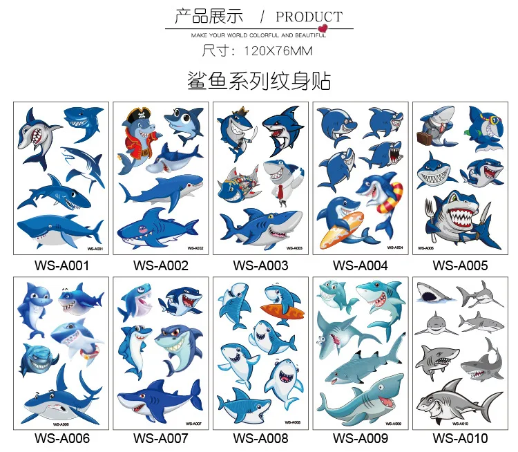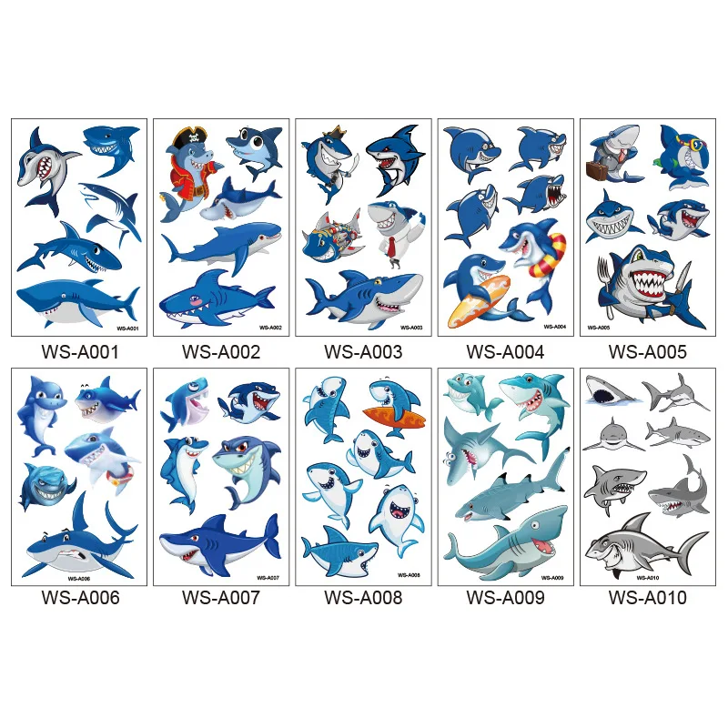 Временная тату-наклейка в виде акулы, имитация морской акулы, водос...