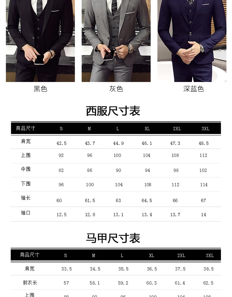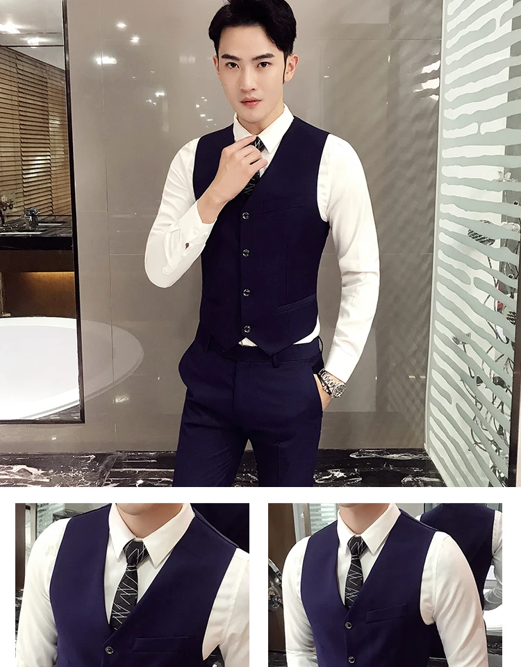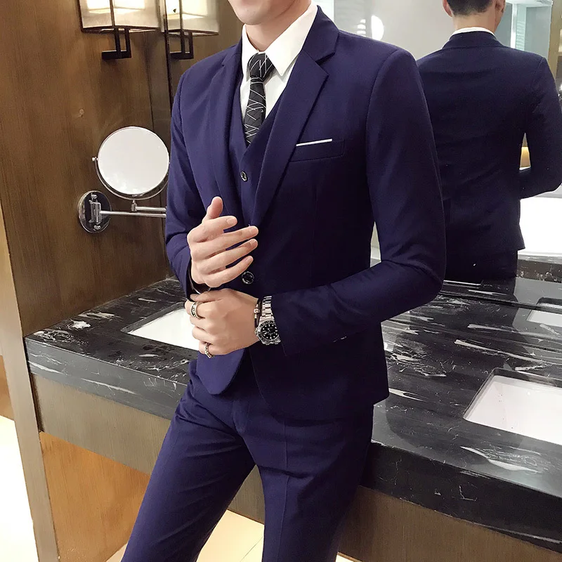 Мужской костюм-тройка, корейский деловой облегающий и красивый комплект