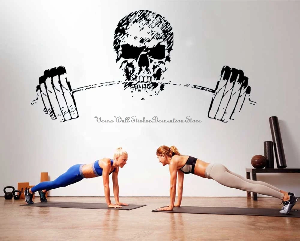 Штанга для тяжелой атлетики, наклейки на стену для упражнений, индивидуальный череп, бодибилдинг, мышцы, тренажерный зал, фитнес-клуб, украшение детской комнаты A30