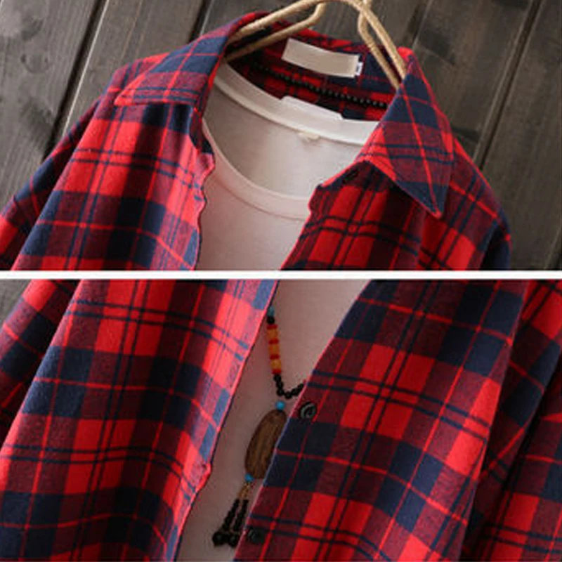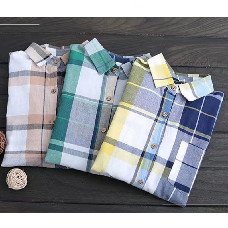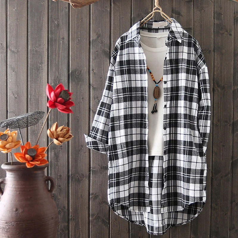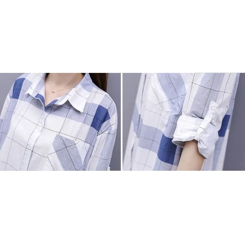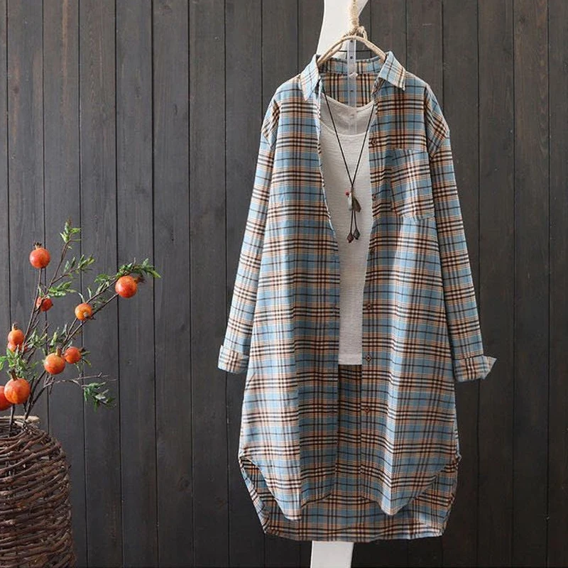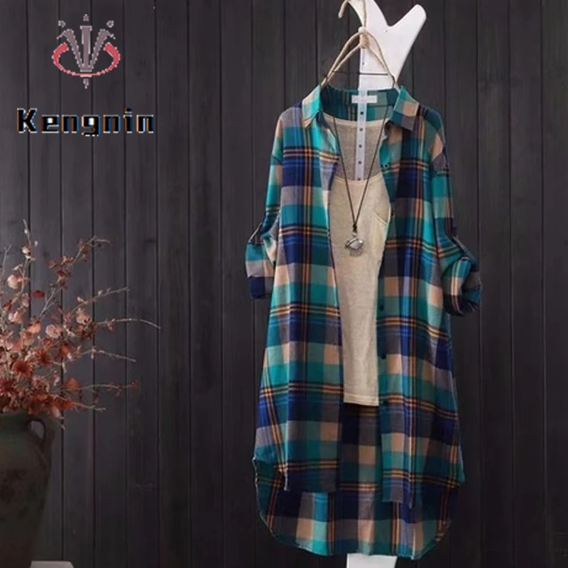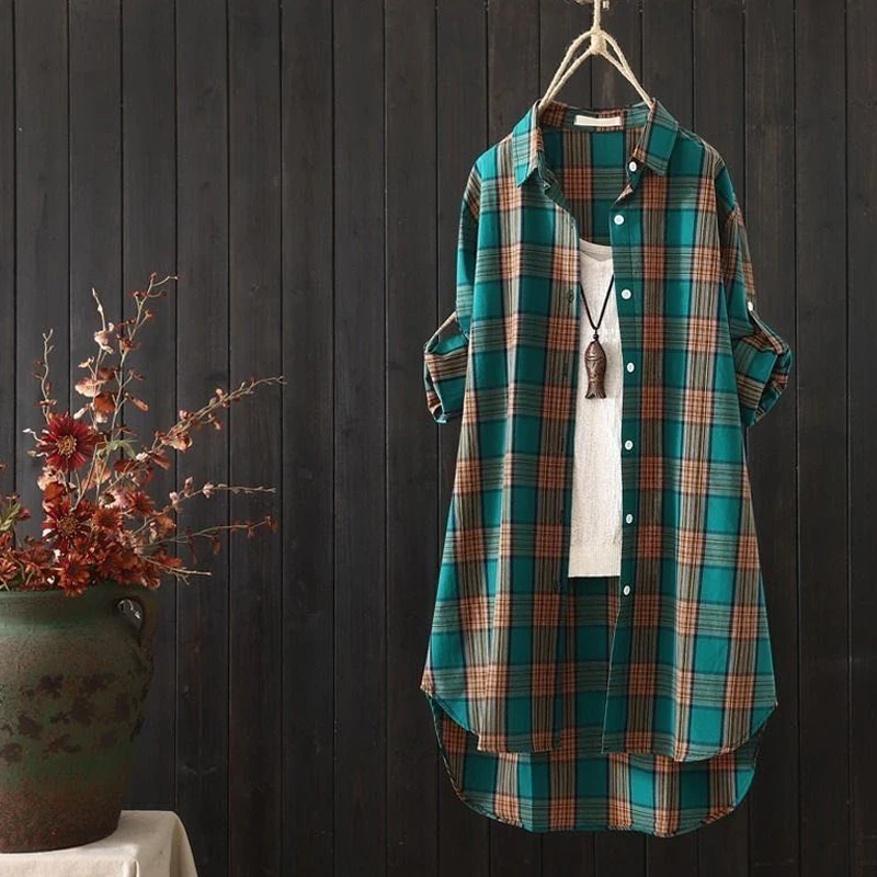 Женская Длинная блузка в клетку, свободная Повседневная рубашка с длинным рукавом, модель KN177, лето 2022