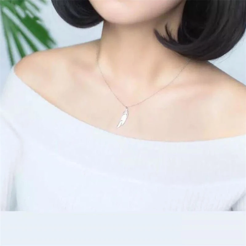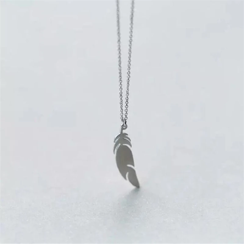 Женское ожерелье с подвеской в виде пера, серебристого цвета