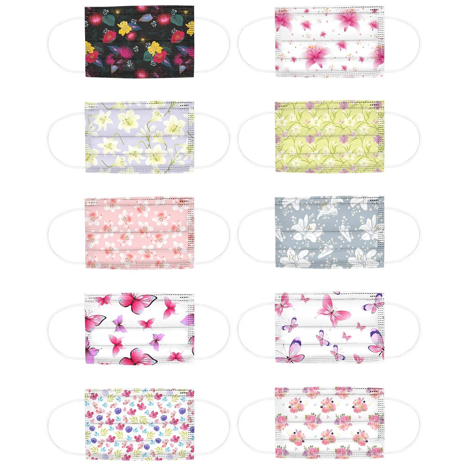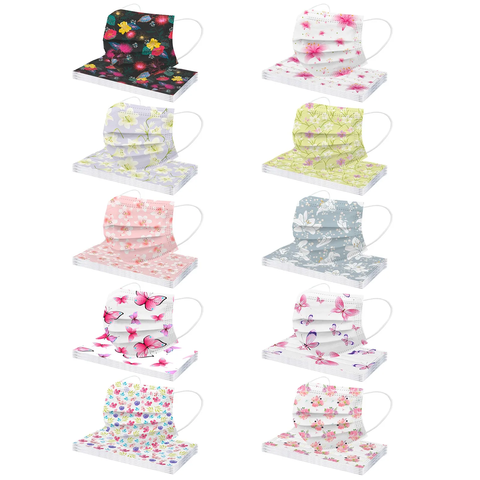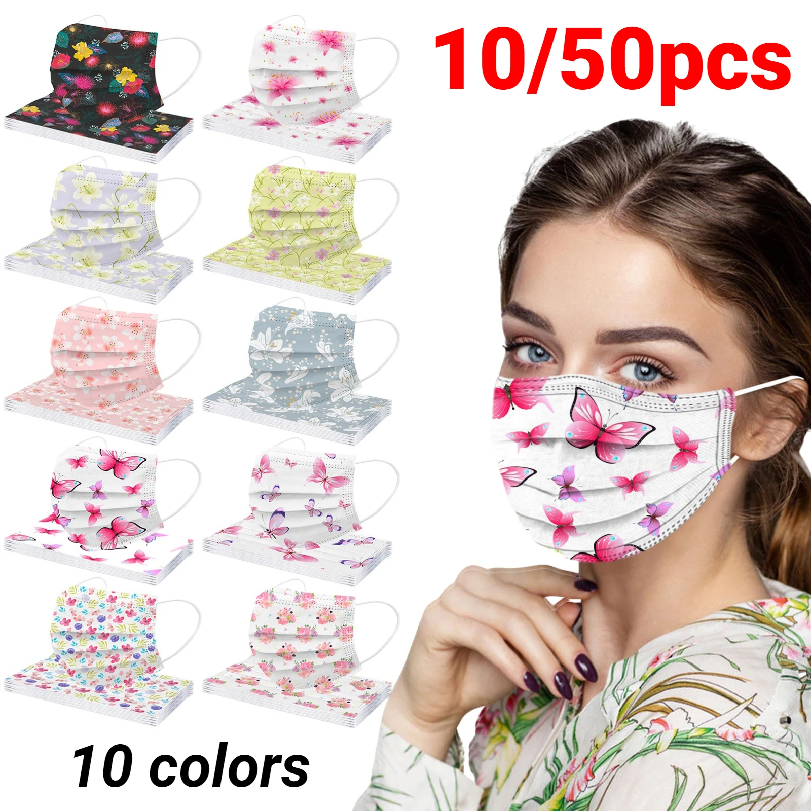 Маски одноразовые для лица с цветочным принтом, 3-слойная защитная маска для лица для взрослых, 10-50 шт.